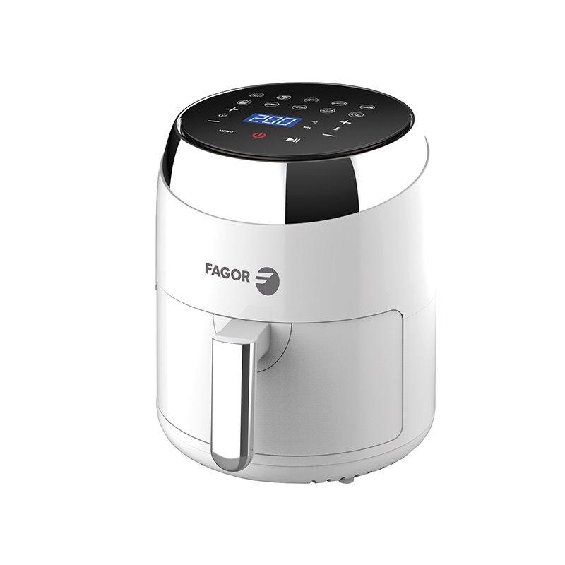 La freidora sin aceite NATURFRESH de FAGOR en color blanco con capacidad de 3.5 litros es el aliado perfecto para disfrutar de alimentos crujientes y deliciosos de forma más saludable. Con tecnología de aire caliente, permite cocinar tus platos favoritos con hasta un 80% menos de grasa. Su diseño moderno y compacto se adapta a cualquier cocina, mientras que su amplia capacidad te permite preparar comidas para toda la familia de manera práctica y rápida. Controla fácilmente la temperatura y el tiempo de cocción para obtener resultados perfectos en cada ocasión. Disfruta de frituras más saludables y sabrosas con la freidora sin aceite NATURFRESH. ¡Cocina de forma más ligera y sabrosa sin renunciar al sabor!