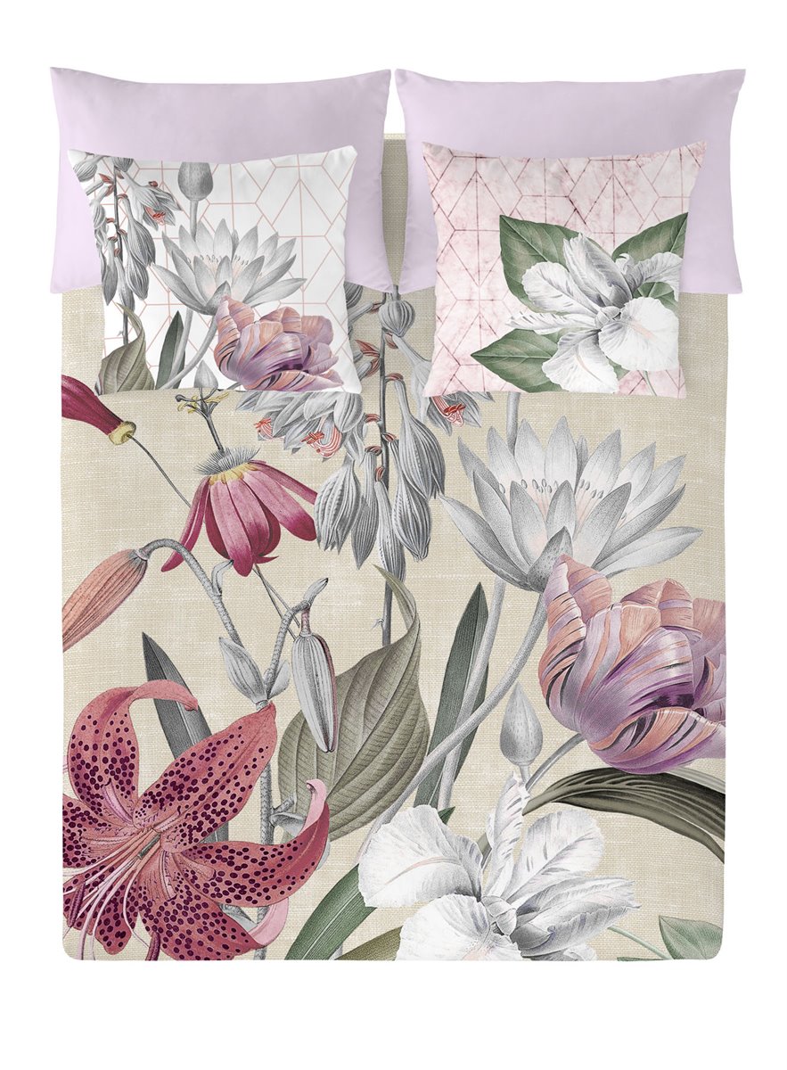 Funda nórdica: 260×220 cm + (45 cm solapa) – 2 Fundas de almohada: 45×110 cm