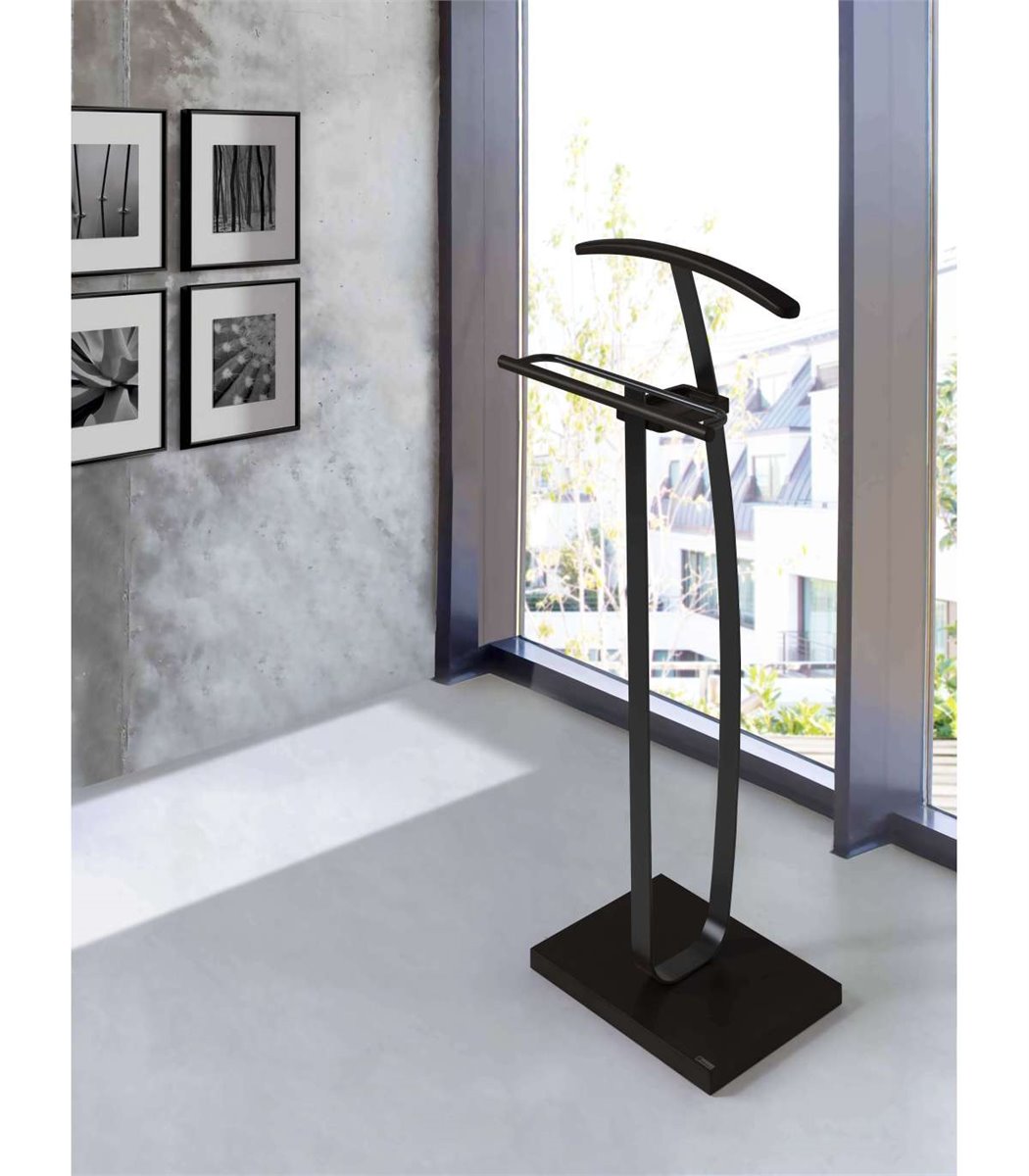 El galán que describes es un elegante y exclusivo accesorio fabricado con madera noble de haya lacada. Este galán cuenta con un acabado de primera calidad tanto en el barnizado como en el lacado, lo que le proporciona una apariencia sofisticada y duradera. Además de ser funcional para colgar ropa y complementos en dormitorios y vestidores, este galán también destaca por su diseño decorativo, que añade un toque de estilo a cualquier espacio.