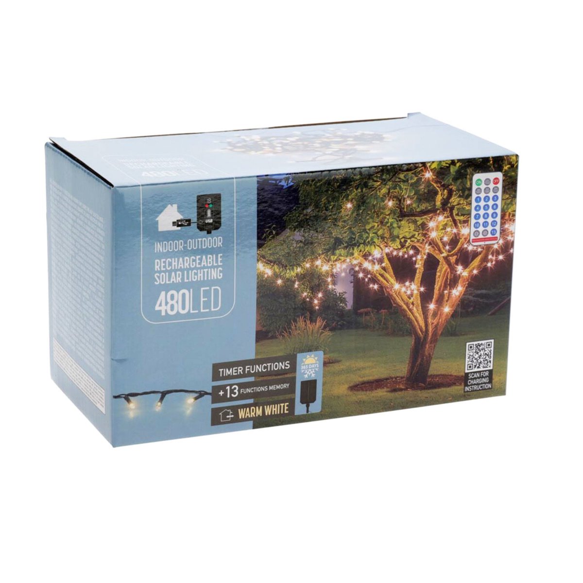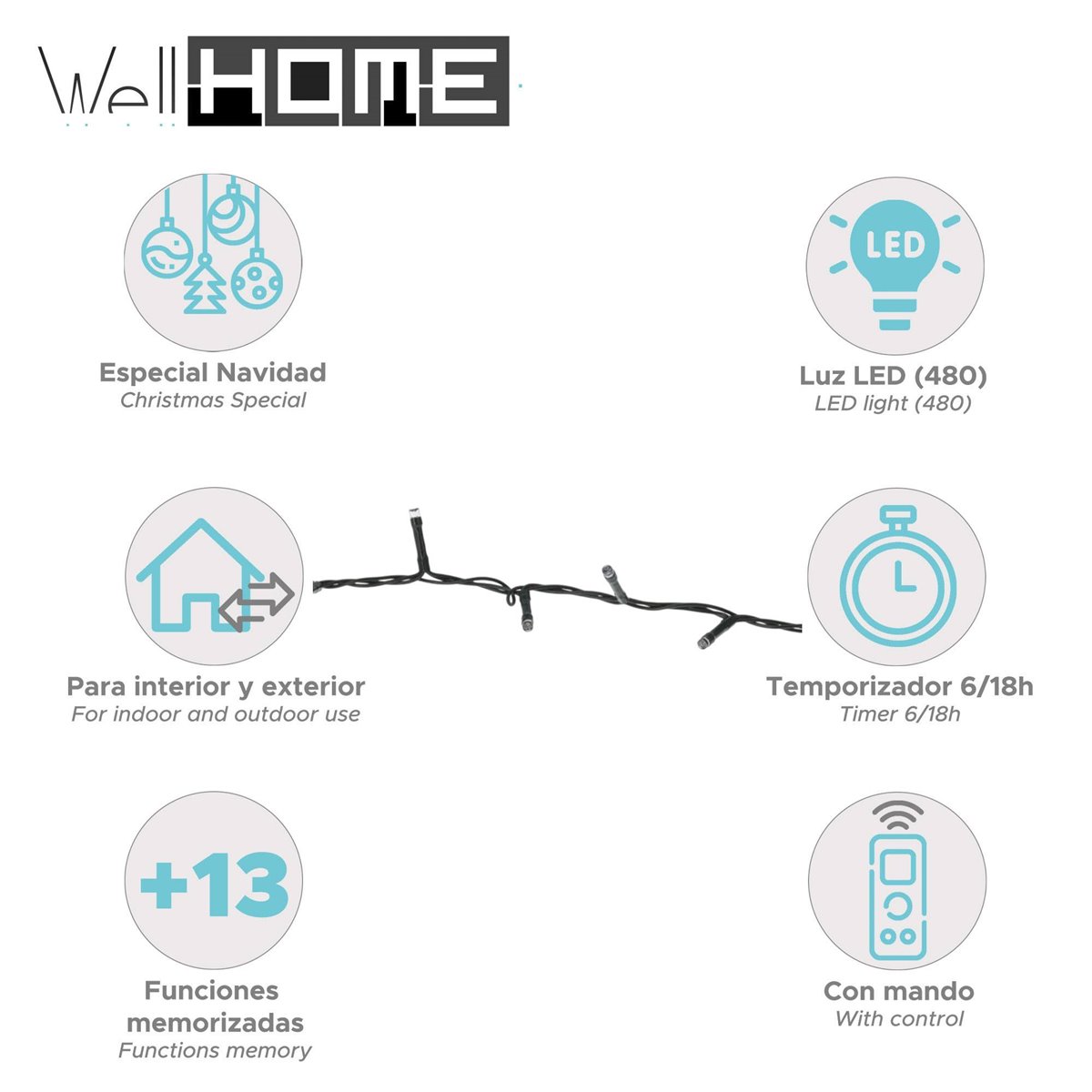 Con 480 bombillas LED blanco cálido y un cable de 300 cm, podrás decorar tanto interiores como exteriores.