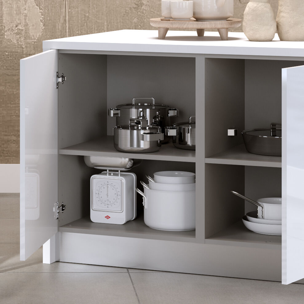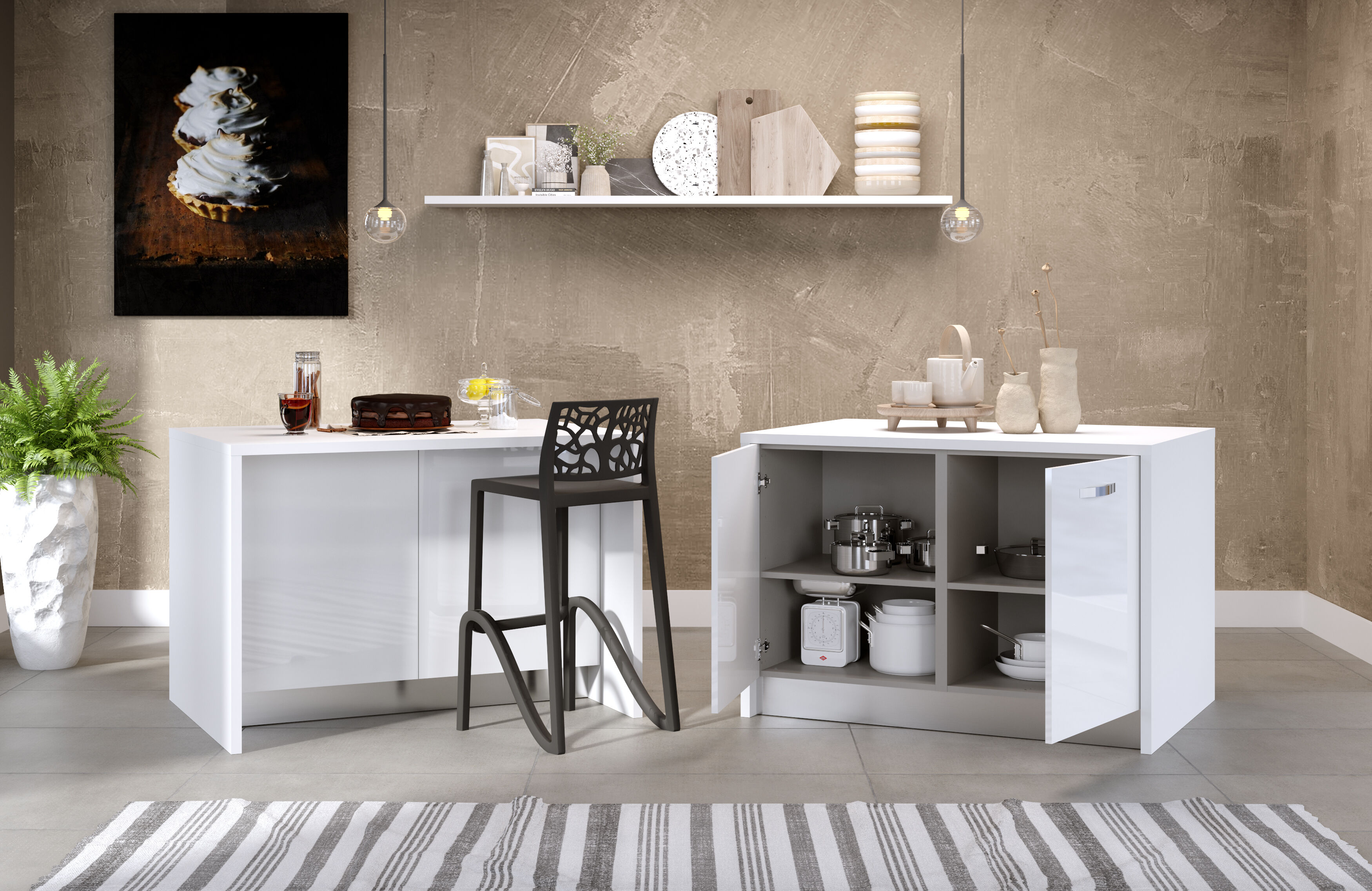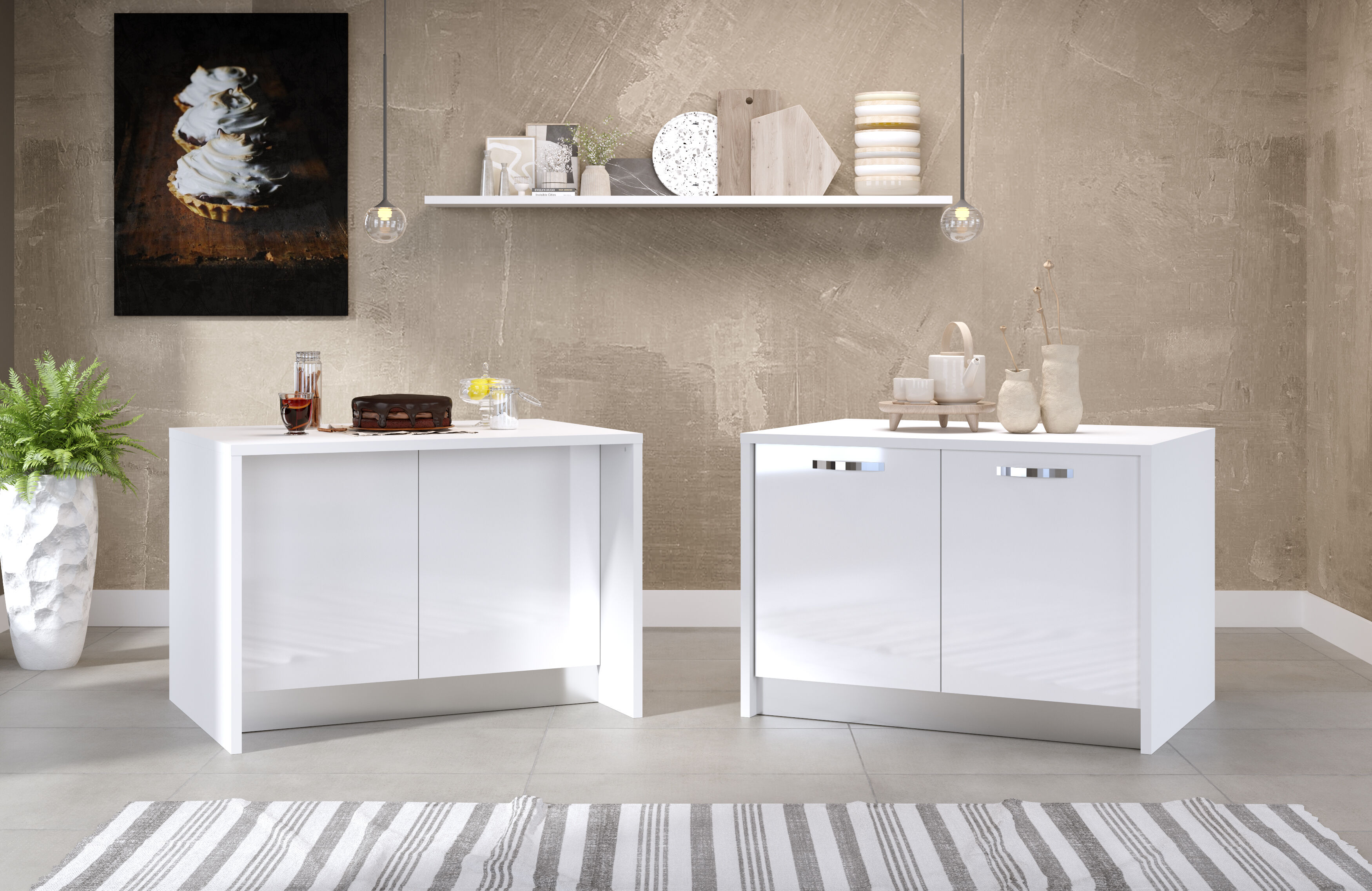 Isla de cocina GILDA ICE L120 cm. Blanco/Blanco brillante. Isla con almacenaje, fabricada con panel de partículas. Consta de dos bases de 60 cm, 1 puerta en cada base, puertas de cierre suave y balda interior en cada base. Dimensiones totales L126,2cm H.87cm P.90cm. Con esta isla podrás disfrutar de una cocina de revista a un precio de escándalo. Elige el acabado que mejor se adapate al diseño de tu estancia y disfruta solo o en compañía del buen diseño.