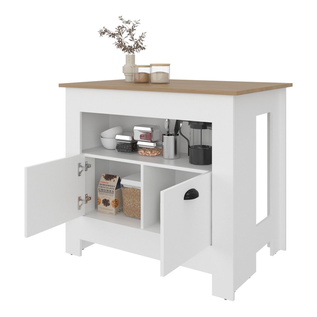 Cuenta con almacenamiento cerrado y compartimentos internos que permiten organizar utensilios, vajilla o despensa de forma accesible y discreta, favoreciendo una distribución ordenada y un uso versátil. Su estructura ofrece una superficie de apoyo ideal para preparar alimentos, servir o complementar el área de trabajo, adaptándose a diferentes rutinas y estilos de vida. Fabricado en madera aglomerada MDP y melamina de alta resistencia, brinda estabilidad, durabilidad y fácil mantenimiento, convirtiéndose en una solución funcional y confiable para el día a día. Una elección pensada para mejorar la experiencia en el hogar con un toque práctico y bien diseñado.