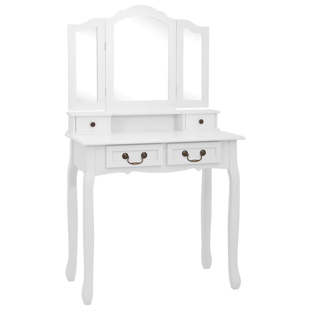 ¡Realiza tu rutina matinal con estilo gracias a nuestro elegante y encantador juego de tocador! Este sofisticado tocador, hecho de madera de paulownia seleccionada, posee una silueta exclusiva y cuatro patas con forma de garra y un estilo lujoso. Los cuatro tamaños diferentes de los cajones ofrecen la cantidad perfecta de espacio para guardar maquillaje y joyas. La superficie también es una excelente plataforma para colocar frascos de perfume u otros adornos. El taburete incluido tiene un asiento acolchado sin respaldo y una base de madera a juego. Además, el espejo incrustado resalta una silueta bien hecha para un toque de estilo moderno.