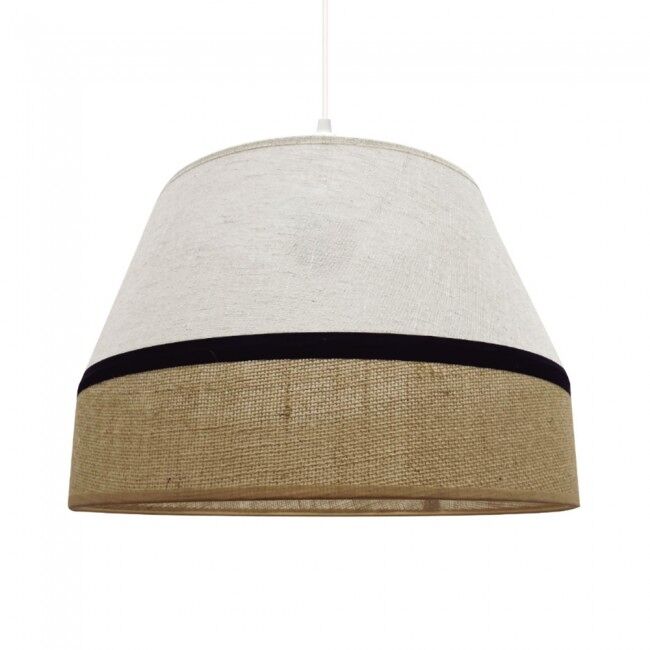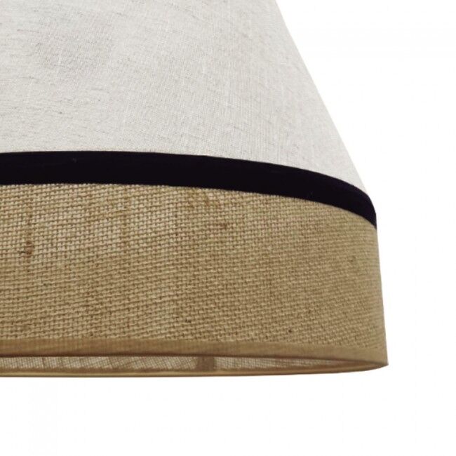 Características Alto Max: 124 Cm. Diámetro: 35 Cm. Pantalla: 24x35 Cm. Cable: 0.8 M.Acabado lino: Marrón JaspeadoAcabado saco: Rústico Material: Lino y Saco