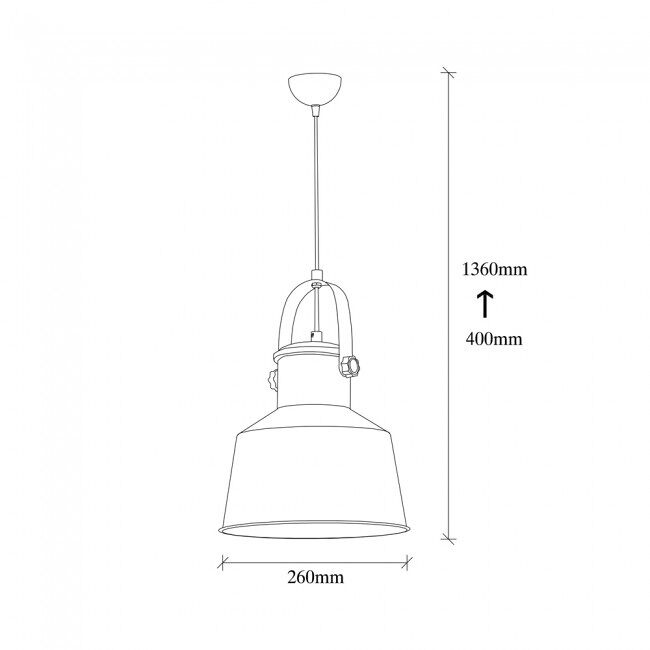 Características Alto Max: 136 Cm. Diámetro: 26 Cm. Cable: 90 Cm. Acabado: Negro+Latón Material: Metal