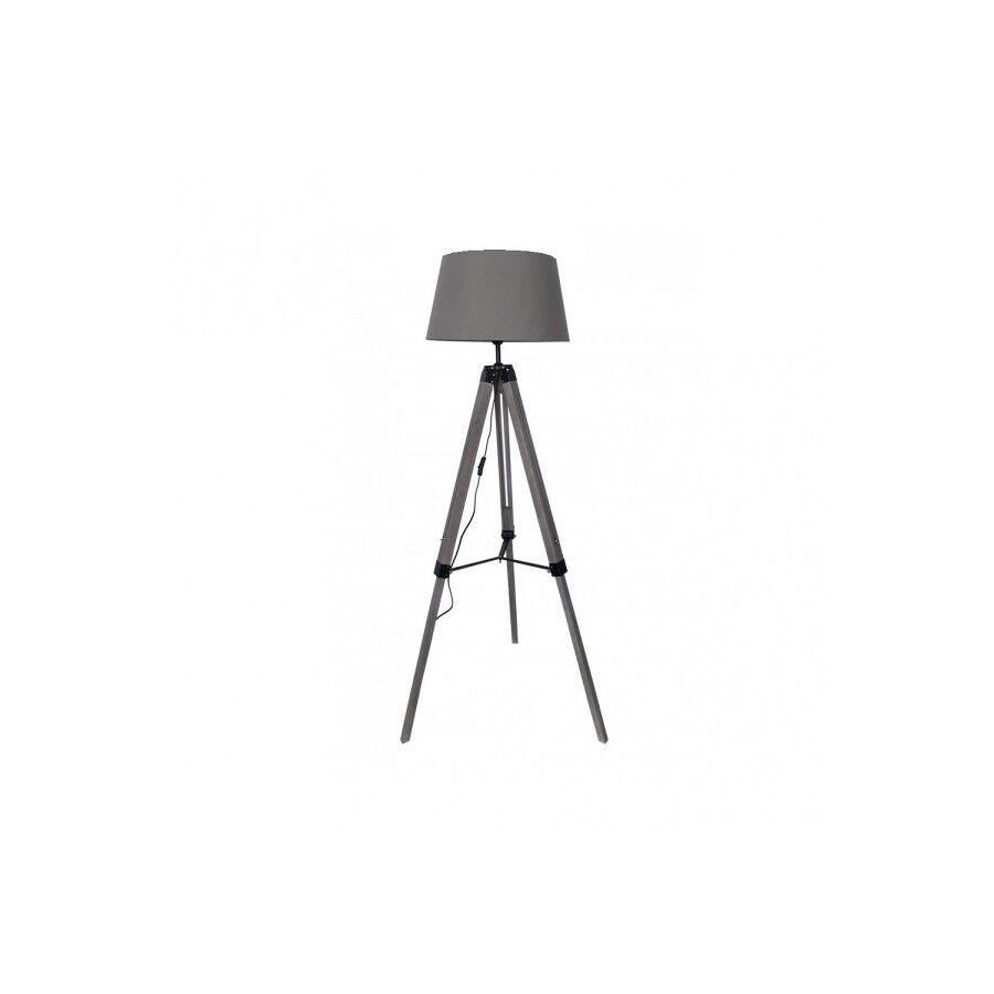 Pie de salón de la serie JULEN de color GRIS/NEGRO. Realizado en metal, madera y textil. Destaca la originalidad del soporte que emula un trípode de estudio profesional. La pantalla textil aporta elegancia, apto para cualquier rincón en estudios, salas de estar y salones. Sus dimensiones, regulables en altura, son de 106<145x45x45 centímetros. Posee un porta lámparas E27. Bombilla no incluida. Puede completar la serie con el sobremesa de la misma familia.
