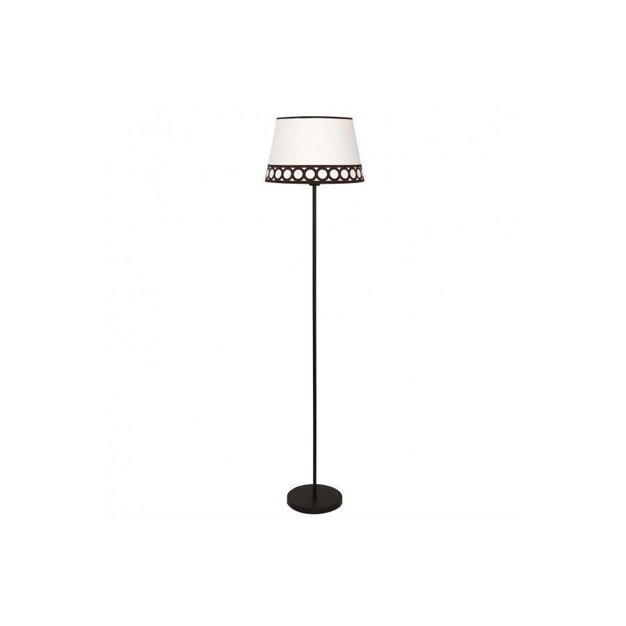 La lampara de pie modelo Dalia de Fabrilamp esta fabricada en metal y pantalla en material textil de color beis decorada con motivos circulares en marrón. Posee un portalámparas de E27.