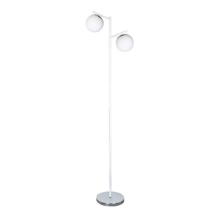 Pie de salón de dos luces de la serie LA HABANA de color BLANCO/CROMO con dos tulipas de color blanco. De diseño original y moderno en forma de árbol con cuerpo de metal y tulipas de cristal blanco. Sus dimensiones son de 160x25x40 centímetros.