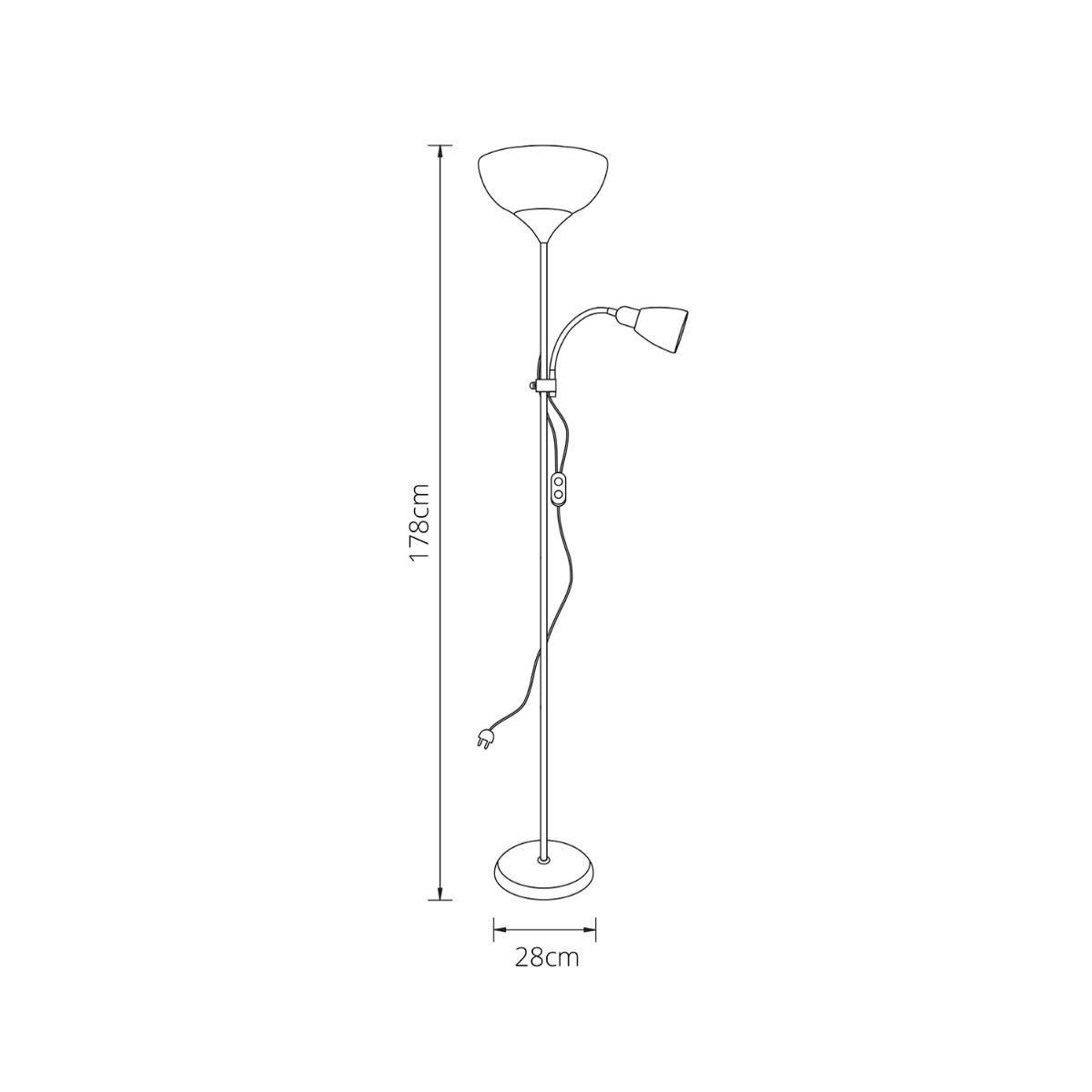 Le presentamos el artículo Lámpara de pie VARESE. Esta lampara es de doble iluminacion una de los portalámparas tienen el punto de luz hacia arriba y el otro es orientable para dirigir el punto de luz donde mas le interese ,es comoda y practica , ideal para tener iluminacion agradable, te aporta una luz tenue y confortable, y para ello deveras adaptarla a la altura de la vista..... junto a un sofa, o en lugares de lectura, la puedes ubicar en cualquier rincon de tu hogar , ya que este tipo de lámparas ,son muy practicas y funcionales. Esta fabricada en metal , con portalámparas en acrílico acabado BLANCO.Las medidas de este modelo de Pie de salón son 178cm de alto y 28cm de diámetro. Su iluminación tiene una potencia de 40w, Este modelo se completa con 1 bombilla E27 para iluminación espacial y 1 bombilla E27 en el brazo orientable de lectura. Es ideal tanto para estudios y espacios de trabajo como para punto de luz auxiliar en salones.Una lámpara puede ubicarse en multiples espacios, salon, dormitorio, comedor, oficina, etc...Tambien es ideal para iluminar tu comedor o salon, son muy decorativas y por su altura son la mejor opción para crear ambiente. Te ayudamos a crear hogares vitales que resulten funcionales, singulares, atractivos y accesibles a todo el mundo, haciendo nuestras vidas más fáciles y además divertidas, con una amplia gama de lamparas para cualquier estancia de tu hogar. Formatos polivalentes con diversidad de estilos y acabados, con los que podras crear ambientes unicos y especiales.La iluminación de tu casa o negocio constituye uno de los pilares fundamentales, por lo que es necesario siempre escoger la mejor opción.En AkunaDecor intentamos ofrecer productos para el hogar, al alcance de cualquiera que desee ultimas tendencias con un toque cosmopolita, moderno y funcional en una constante renovación y siempre con agilidad.Disponemos de una extensa coleccion de iluminacion, mobiliario y decoracion de la prestigiosa.Si necesita mas informacion sobre este producto no dude en contactar con nosotros y estaremos encantados de atenderle.