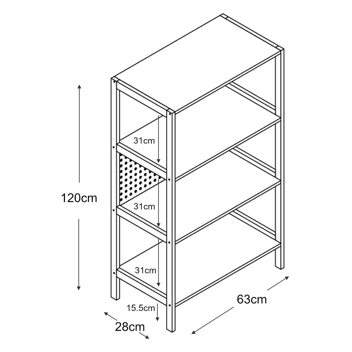 Con su diseño elegante y estructura abierta, esta estantería ofrece espacio para tus libros, adornos y objetos personales, además realza la atmósfera de tu salón, dormitorio o despacho. Sus paneles traseros perforados son estéticamente atractivos, y al mismo tiempo aseguran que tus objetos permanezcan en su lugar.