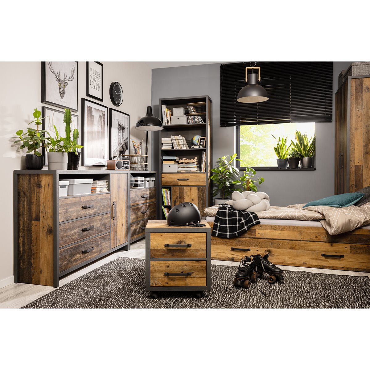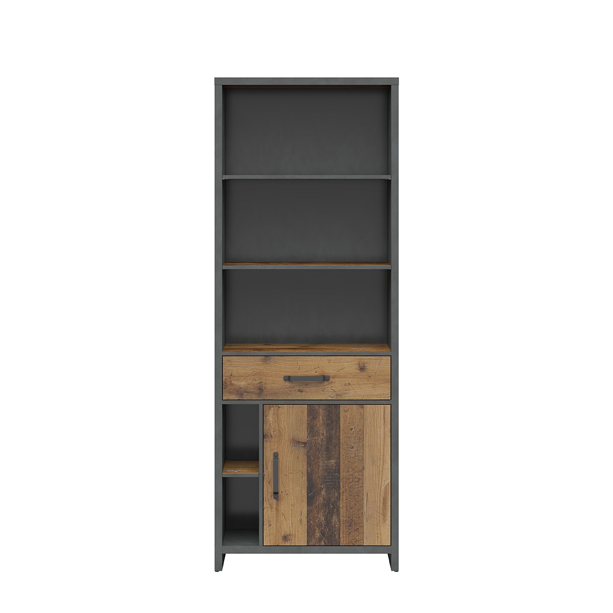 Librero 1 puerta y 1 cajón Paul Madera y Gris antracita