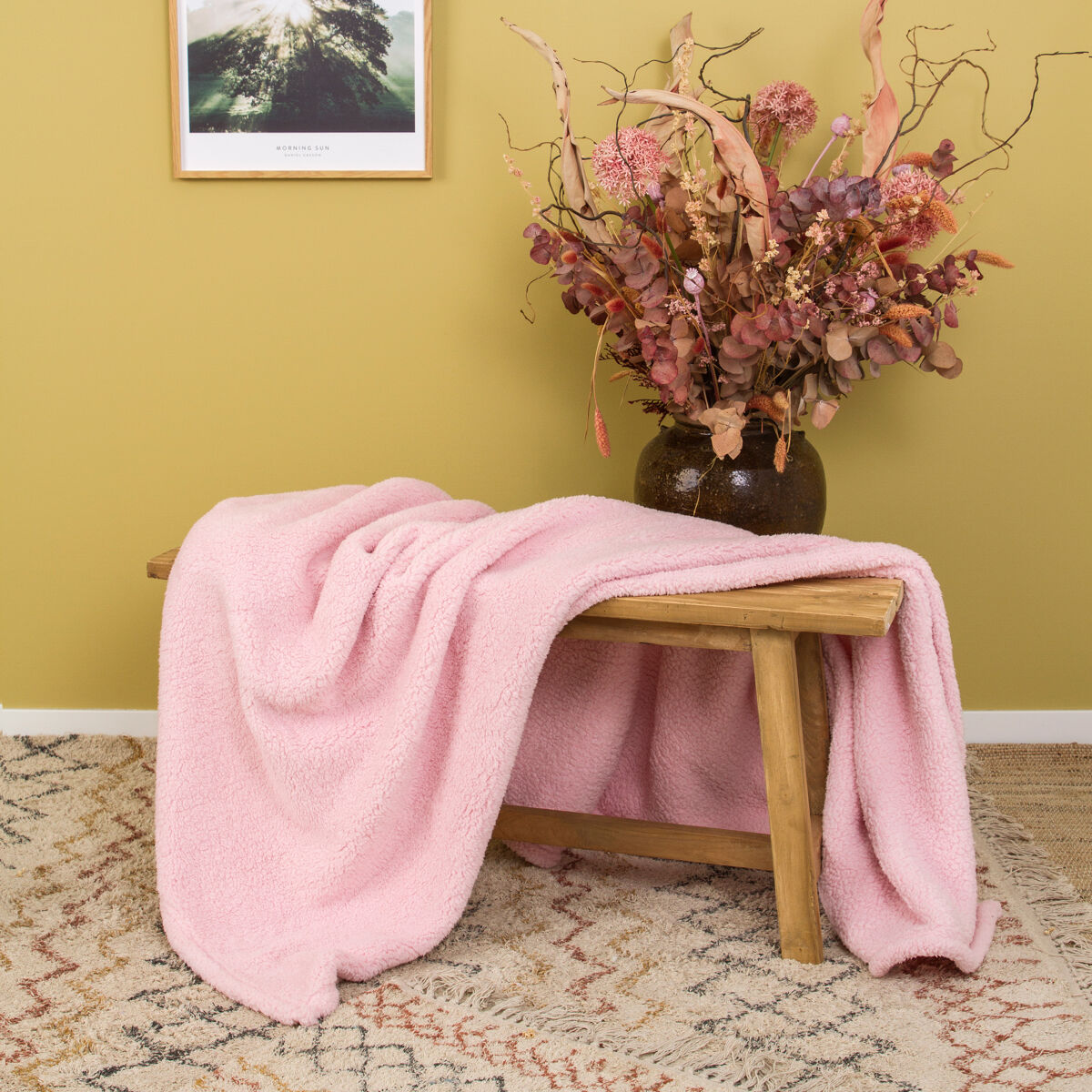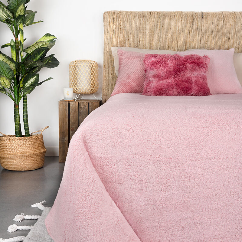 Manta para cama hecha de borreguillo. El borreguillo aporta esponjosidad, suavidad y ayuda a protegerse del frío de forma cómoda y ligera.