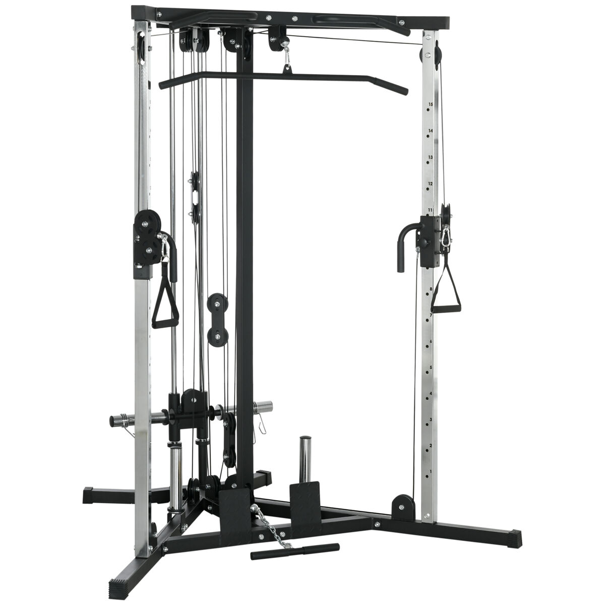 Este equipo de entrenamiento te permite trabajar múltiples grupos musculares cambiando la altura del sistema de polea doble. Podrás realizar diferentes ejercicios bilaterales y unilaterales para trabajar todos los grupos musculares. Saca el máximo partido del entrenamiento de fuerza de la parte superior del cuerpo asignando las ganancias a múltiples grupos con un simple ajuste. De acero resistente, esta máquina de SPORTNOW proporciona el entrenamiento que necesitas para alcanzar tus objetivos.