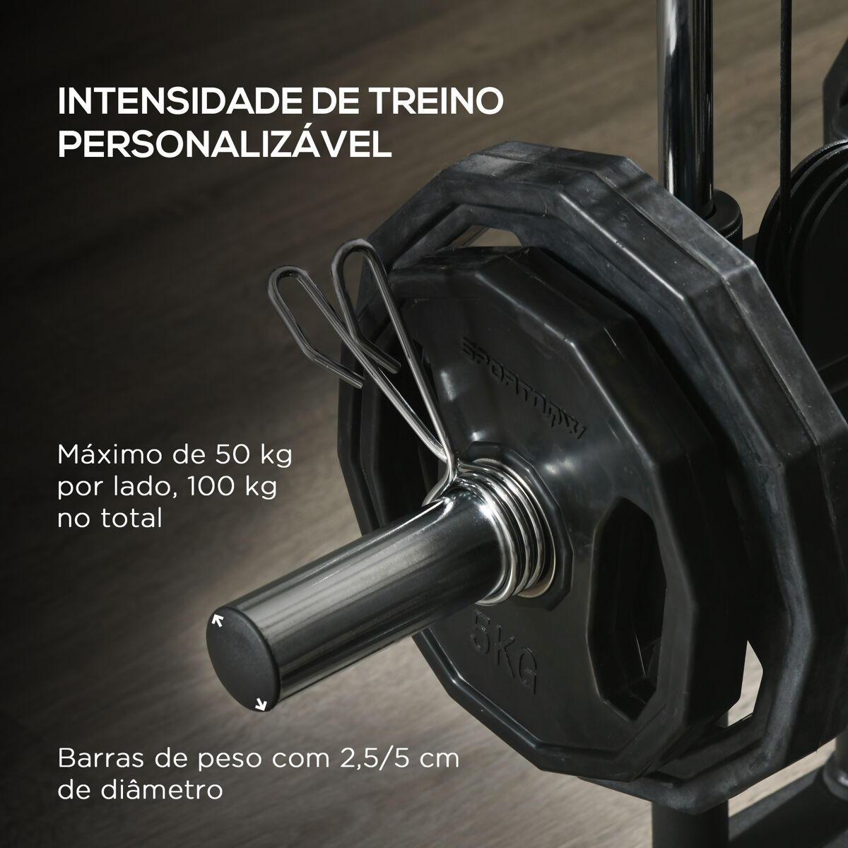 - Contrapeso máximo: 50 kg por lado, 100 kg en total