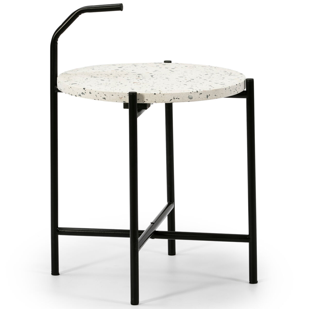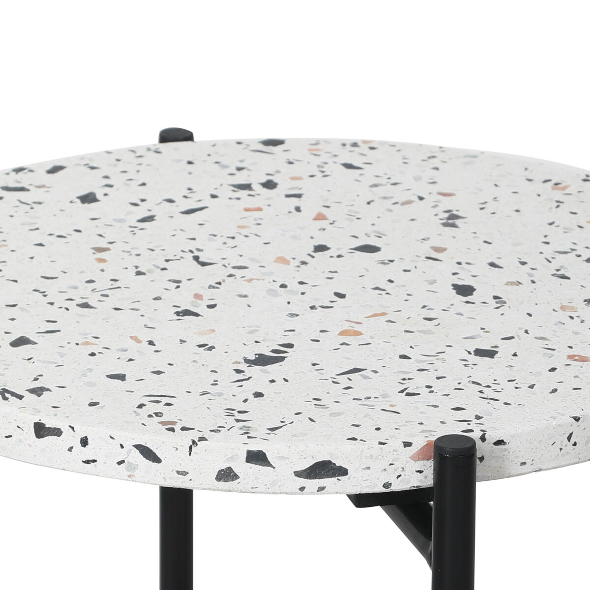 - Material: Tapa de Terrazo Blanco y patas metálicas en color Negro mate.