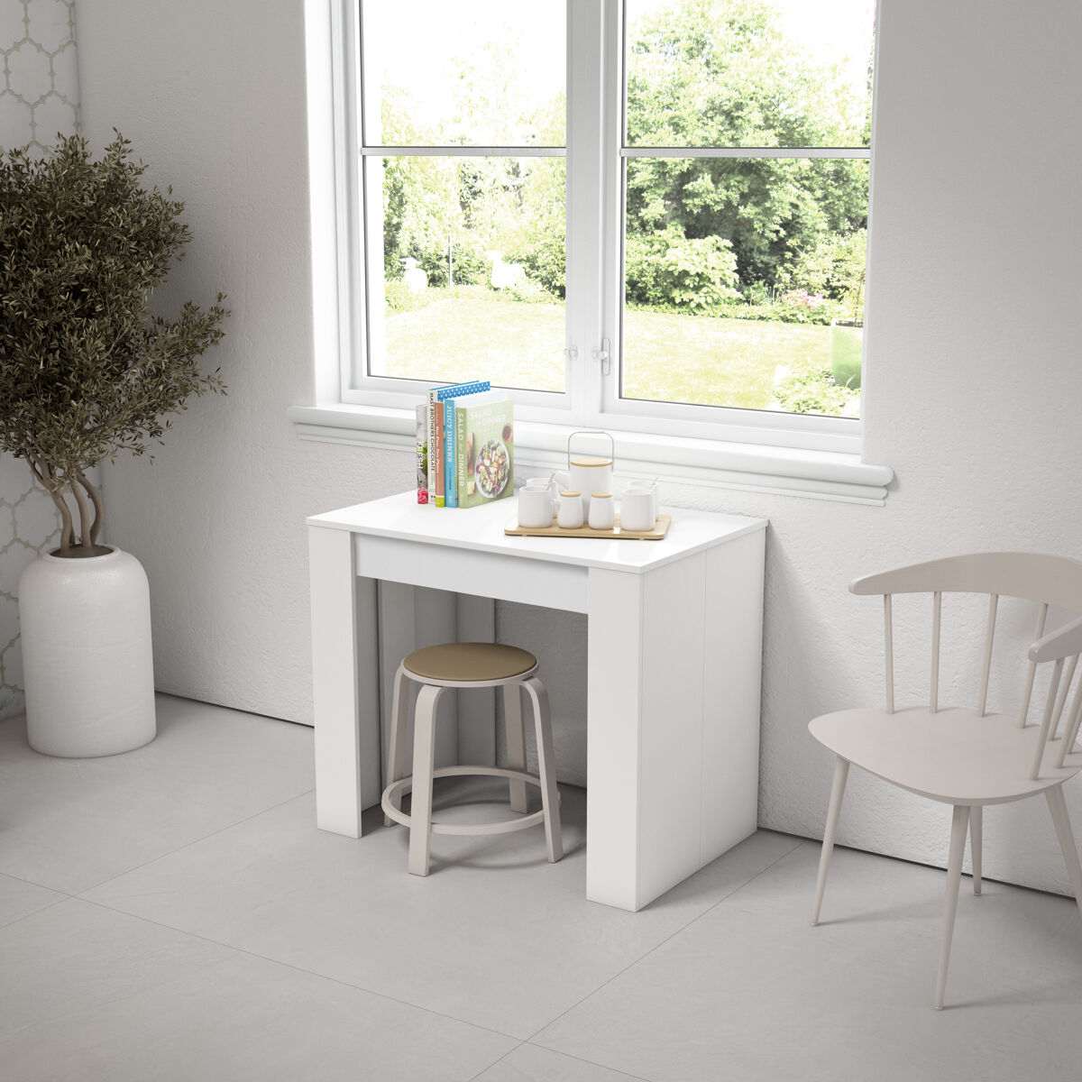 La mesa consola extensible Skraut Home es una práctica consola y mesa de comedor extensible con múltiples posiciones de montaje.
