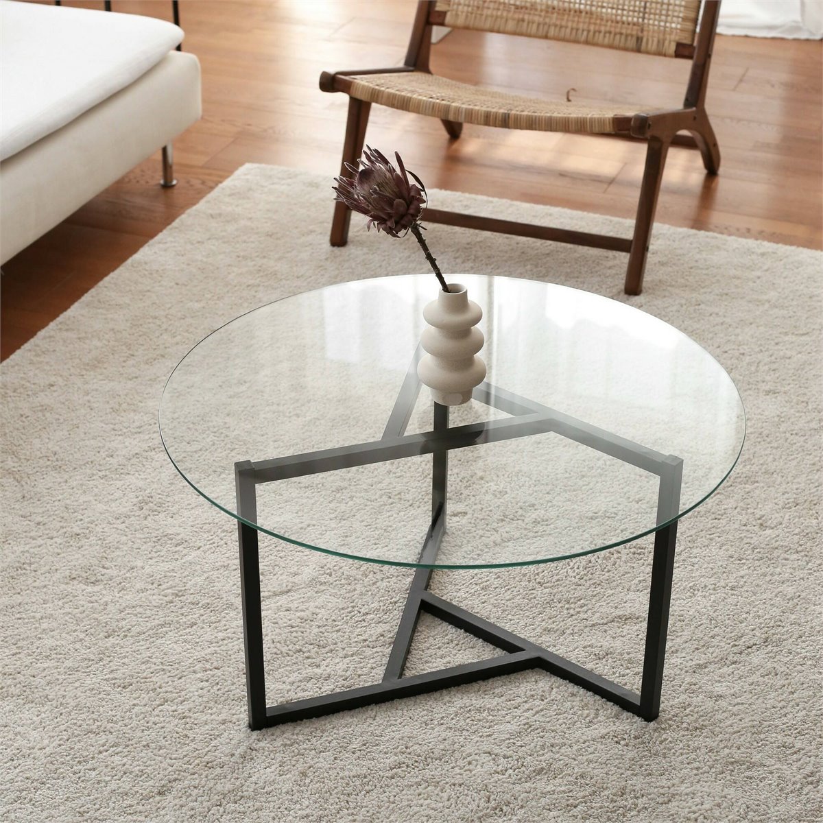 MESA DE CENTRO - Mesa de centro baixa, Porta-revistas para sofá, Estante de sala, 75x75h42 cm, Preto e Transparente.