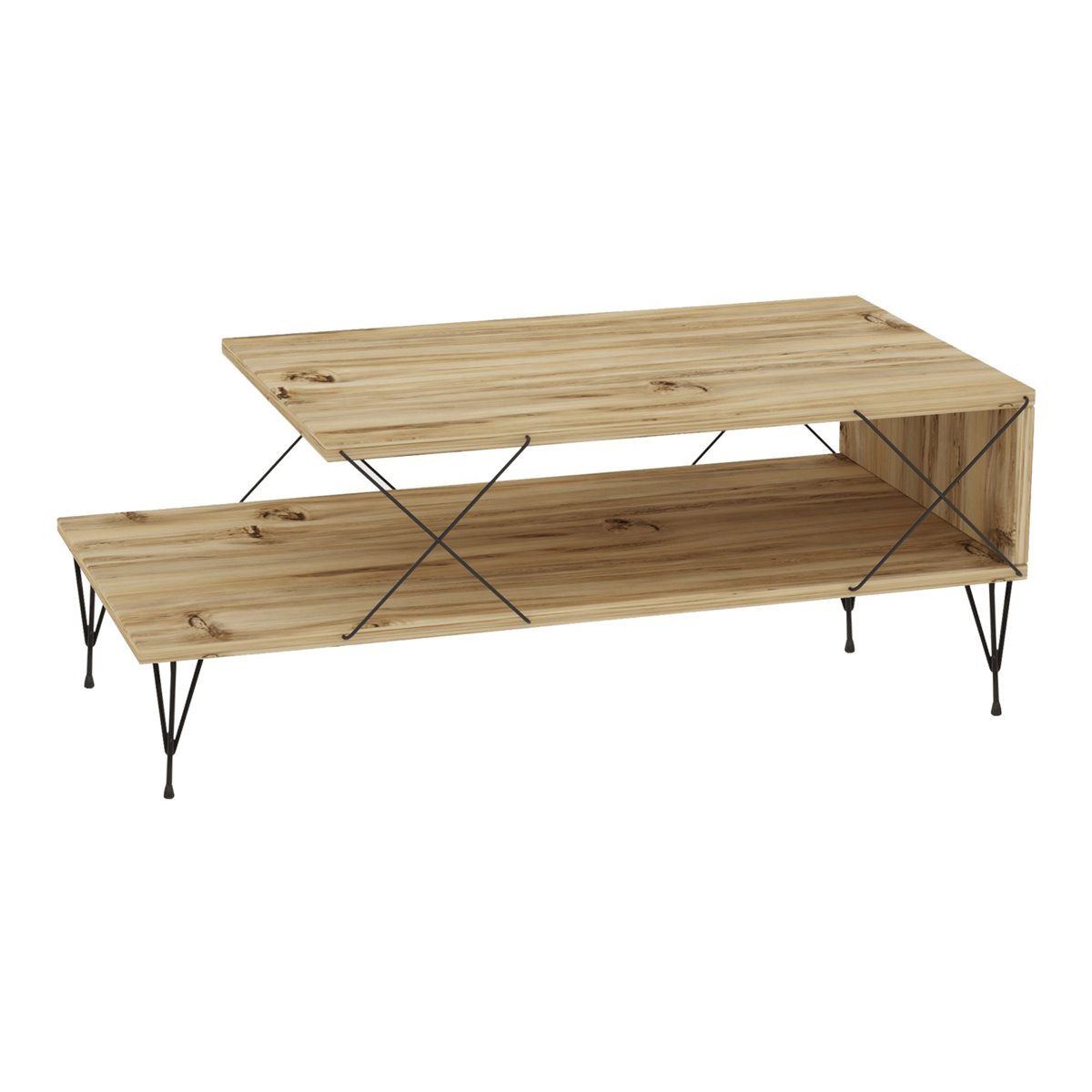 La mesa de centro ASKER no solo es un mueble funcional, sino también una pieza de diseño que eleva el estilo de tu salón. Su estructura innovadora de dos pisos superpuestos, unidos por un panel lateral y sostenidos por elegantes barras en forma de X garantiza no solo estabilidad, sino también una estética visual impactante.