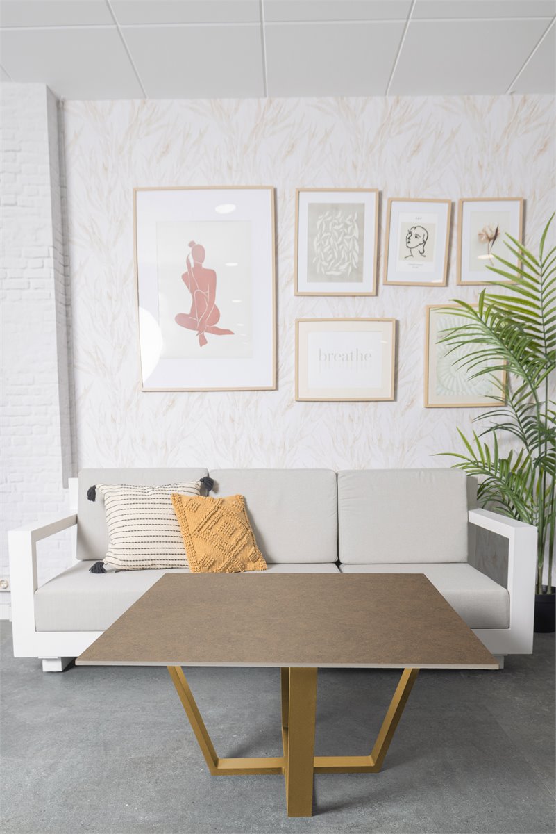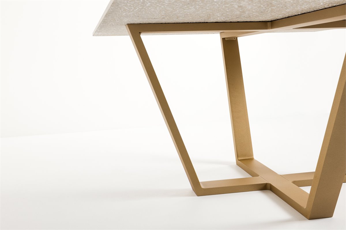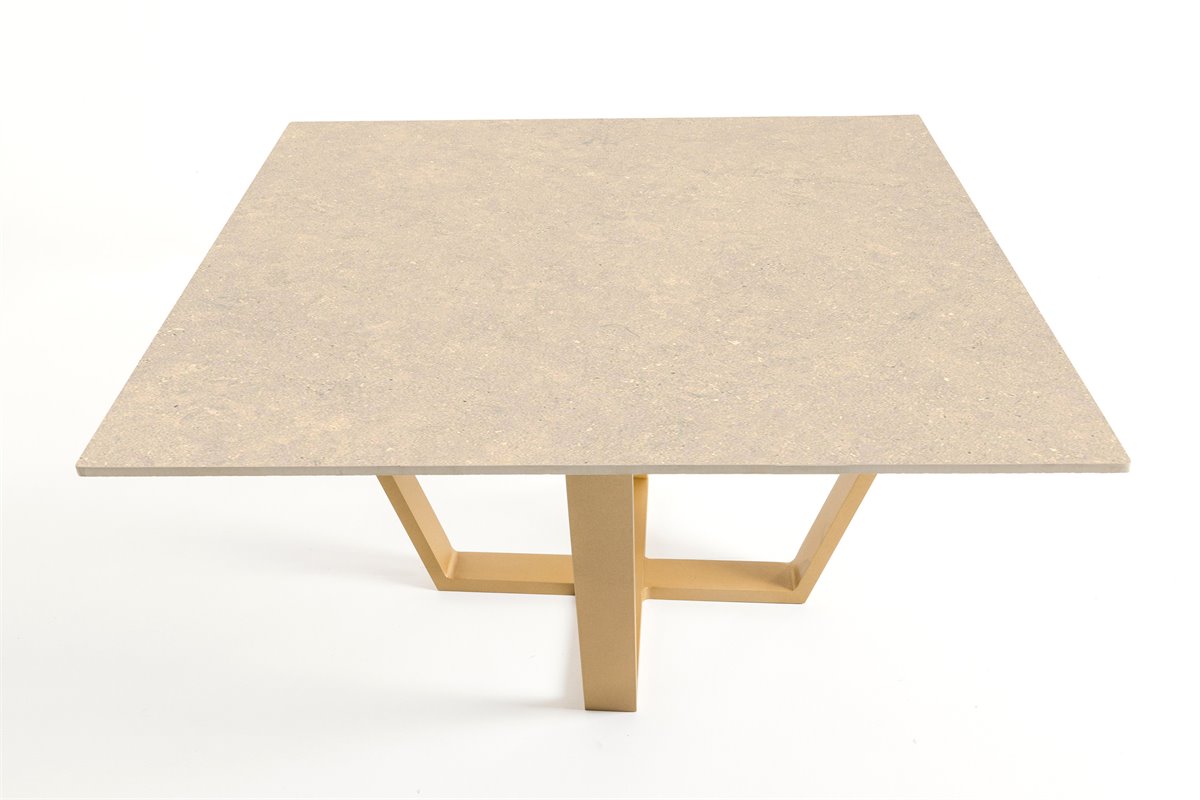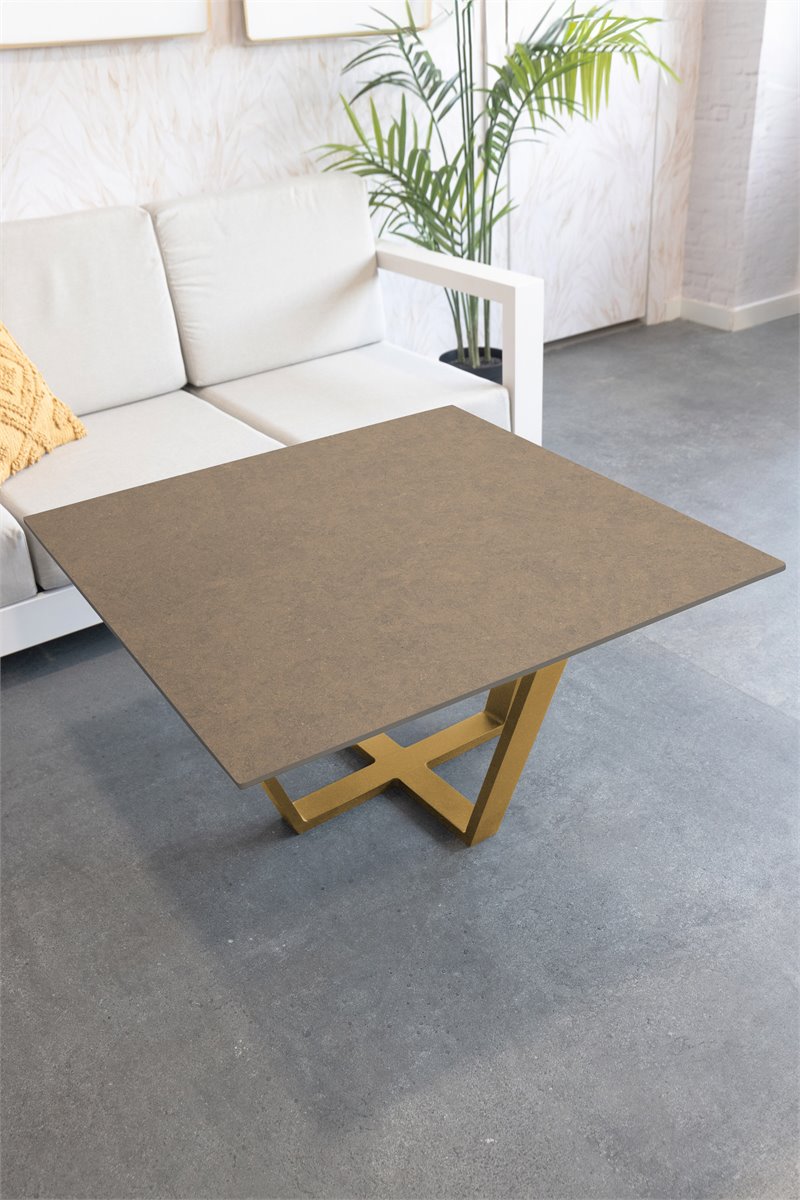 Descubre la elegancia y sofisticación de la mesa de centro EXCALIBUR. Con su panel de cerámica con efecto piedra beige y su resistente pie de aluminio dorado, esta mesa será el centro de atención en tu sala de estar. Sus medidas de 75 ancho x 48 alto x 75 fondo cm la convierten en el centro perfecto para reuniones con amigos o simplemente para disfrutar de un momento relajante. No pierdas la oportunidad de añadir un toque de lujo a tu salón.