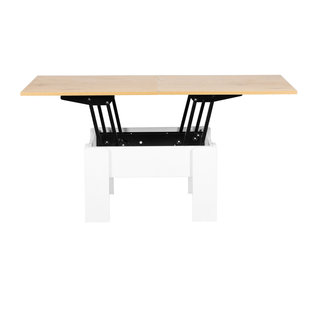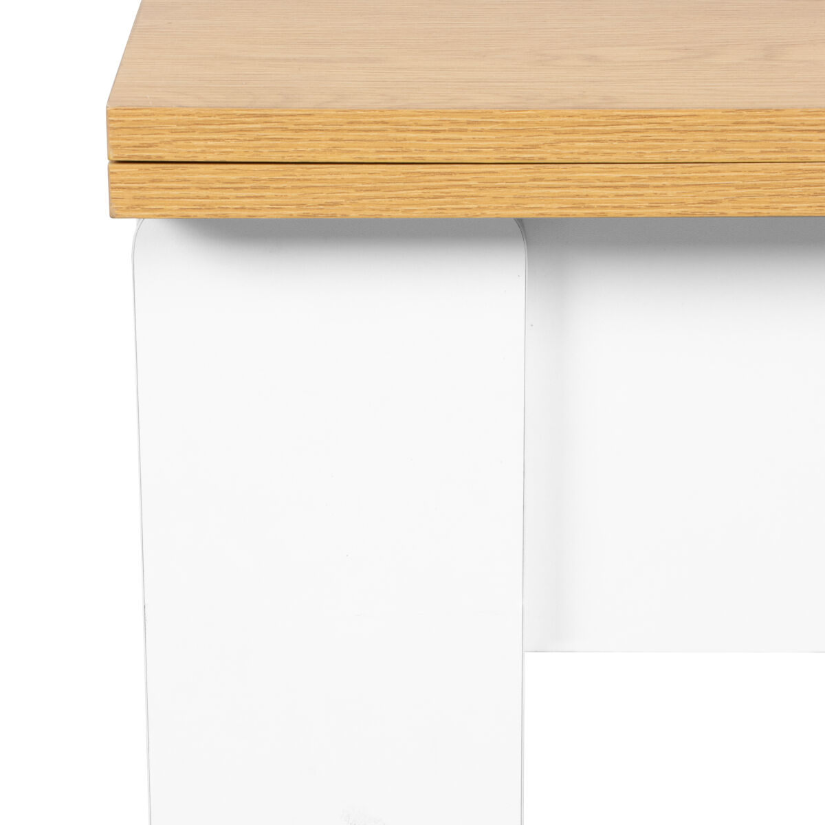 Mesa de centro Filippa es la opción ideal para aquellos que buscan funcionalidad y diseño en un solo mueble. Con una estructura de MDF de alta calidad en color madera, combinada con patas blancas, aporta un estilo moderno y elegante a cualquier espacio. Su forma cuadrada y sus dimensiones (75 cm de ancho, 47 cm de alto y 75 cm de fondo) la convierten en una pieza perfecta para salas de estar de tamaño mediano o pequeño. Además, su capacidad extensible y elevable la convierte en un mueble versátil, ya que puede transformarse en una mesa de comedor o de trabajo, alcanzando medidas de 150 cm de ancho, 74,5 cm de alto y 75 cm de fondo. La mesa Filippa se adapta a tus necesidades y te ofrece comodidad sin sacrificar el estilo. ¡Un toque de sofisticación y funcionalidad para tu hogar!