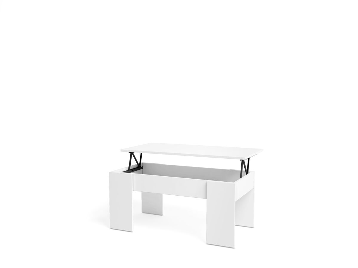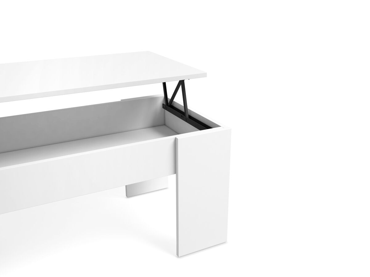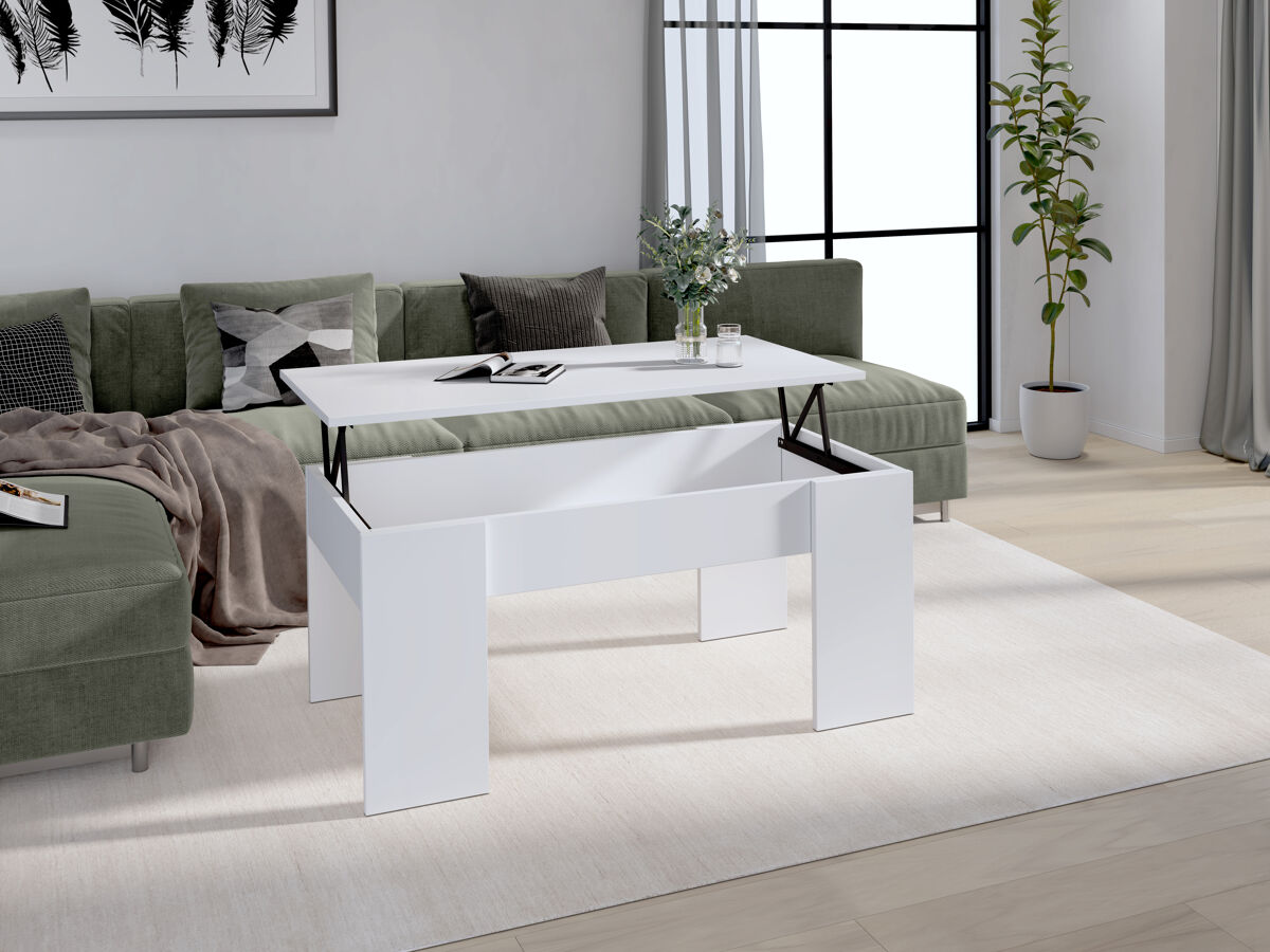 Aporta estilo y funcionalidad a tu hogar con la mesa de centro elevable LOW en color blanco. Fabricada en melamina de alta calidad, ofrece resistencia y durabilidad. Su diseño moderno y práctico permite elevar la tapa para mayor comodidad, ideal para comer, trabajar o guardar objetos. Con medidas de 100 cm de ancho, 45 cm de alto y 50 cm de fondo, es perfecta para optimizar el espacio en tu salón. ¡Una solución versátil y elegante para tu día a día!