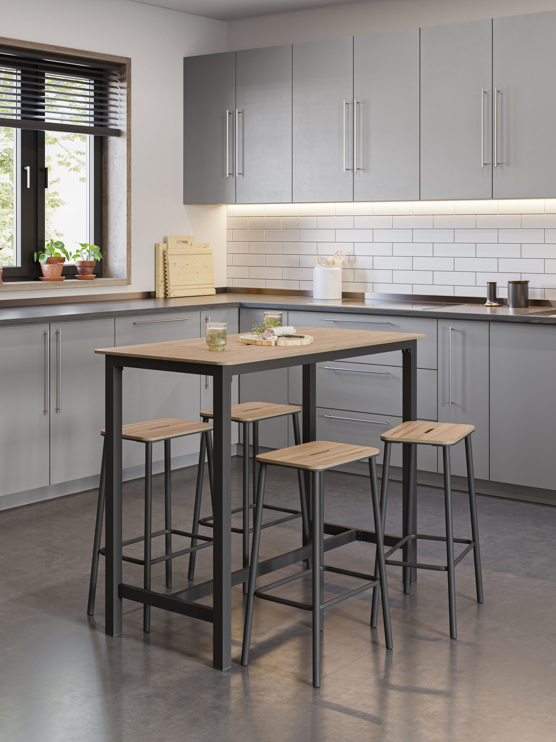 La mesa bar modelo ARIA es una pieza de mobiliario moderna y elegante que combina materiales de alta calidad con un diseño versátil. Su estructura armoniza la calidez de la madera con la solidez del metal, logrando un equilibrio perfecto entre estilo y funcionalidad. Ideal para cocinas, comedores, bares en casa o incluso espacios de trabajo con un aire contemporáneo, esta mesa se adapta a diferentes necesidades sin perder su esencia sofisticada.La mesa ARIA destaca por su tapa de madera en color roble, un material que aporta calidez y naturalidad al ambiente. Su acabado resalta las vetas de la madera, proporcionando una textura única que realza su estética rústica y atemporal. El tono roble es ideal para combinar con diversos estilos decorativos, desde el industrial hasta el escandinavo o el moderno, permitiendo su integración en espacios con diferentes paletas de colores. Las patas de metal en color negro añaden un toque de elegancia y sobriedad, reforzando el carácter contemporáneo de la mesa. Este contraste entre la madera y el metal genera una apariencia sofisticada y equilibrada, perfecta para quienes buscan un mueble funcional sin sacrificar el diseño. Además de su impacto visual, la estructura metálica garantiza una gran estabilidad y resistencia, soportando el uso diario sin perder su firmeza. Con una altura ideal para ser utilizada con bancos altos o taburetes, la mesa bar modelo ARIA se adapta a diversos espacios y necesidades. Su tamaño permite optimizar áreas reducidas sin comprometer la comodidad, convirtiéndola en una opción práctica para apartamentos, lofts o cocinas abiertas. También puede utilizarse como un área de trabajo o para desayunar, ofreciendo un espacio cómodo y accesible para diversas actividades. El diseño de la mesa ARIA facilita su combinación con otros muebles y accesorios. Su estructura minimalista permite complementar la decoración con sillas de distintos estilos, lámparas colgantes o elementos decorativos que realcen su carácter moderno. Gracias a su combinación de materiales y colores, la mesa ARIA se adapta a distintos ambientes, desde espacios con una estética industrial hasta decoraciones más clásicas o modernas. Su tapa en roble aporta calidez y naturalidad, mientras que sus patas negras le confieren un aire sofisticado y versátil. En definitiva, la mesa bar modelo ARIA es una opción ideal para quienes buscan un mueble funcional, resistente y con un diseño atractivo, capaz de transformar cualquier espacio con su presencia elegante y contemporánea.