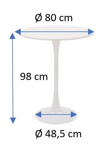 La mesa de cocina fija LIDIA tiene un diseño moderno y elegante con forma circular. Ha sido fabricada con encimera de MDF color blanco mate y con pata y base de metal color blanco. Con un diámetro de 80 cm y una altura de 98 cm esta bonita mesa puede albergar hasta 4 comensales. La mesa LIDIA tiene un diseño perfecto para que puedas situarla en cualquier estancia de tu hogar, aportando estilo y un toque moderno a tu etancia.