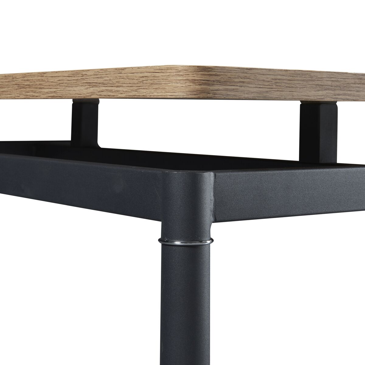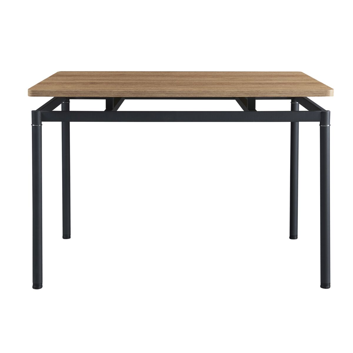La combinación del tablero de MDF efecto roble y las patas de acero negro le dan un toque moderno y sofisticado, a la vez que aportan una elegancia distintiva al conjunto del mueble. La apariencia del tablero de la mesa flotando por encima del marco añade una sensación de ligereza y modernidad al diseño general, mientras que las 4 robustas patas garantizan la estabilidad y seguridad de la mesa.