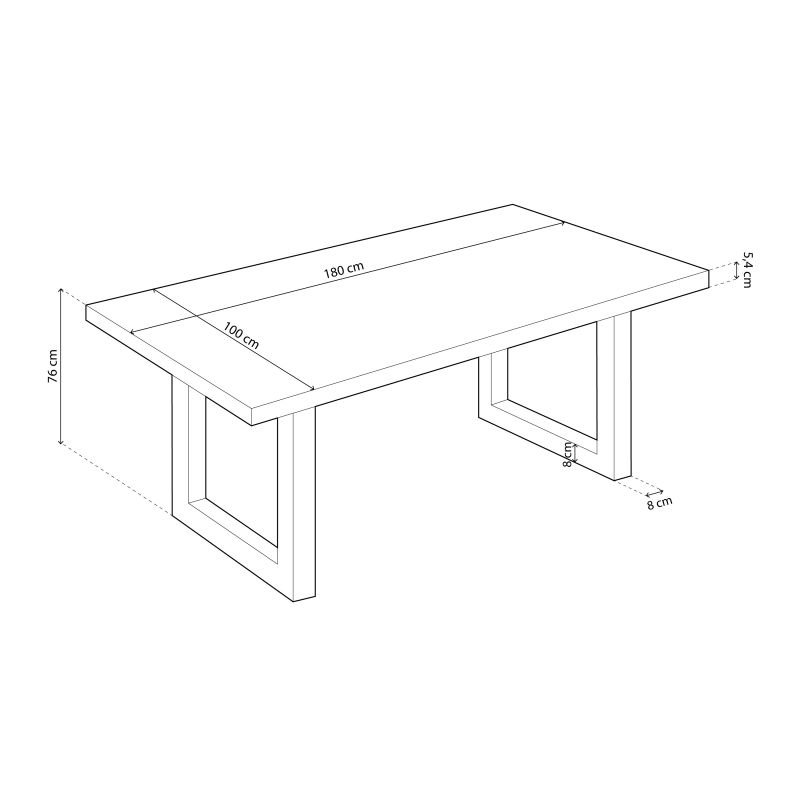 La mesa de comedor Loft 180 es una mesa fija de madera de roble con patas metálicas en forma de U en color negro o blanco. Es una mesa robusta y resistente por los materiales que la componen, portará confort y modernidad a tu hogar . Es una mesa amplia y resistente que ofrece la calidez de la madera de roble junto con la resistencia del mismo material. Acompañado del robusto metal de las patas, de 8 x 8 cm de grosor , que destacan como elemento decorativo del propio mueble. Va a tomar una discreta relevancia en tu salón. Incluye topes de suelo niveladores, que también protegerán el suelo de rayadas y ruidos a la hora de mover el mueble. Para su mantenimiento no hará falta gran cosa. La madera ha sido tratada para el uso doméstico, así que para su limpieza solo hará falta un paño seco o húmedo con un poco de jabón. Requiere montaje (incluye piezas, instrucciones y herrajes), y está sujeta a servicio post venta 100% satisfacción : reponemos, sin coste adicional, cualquier pieza que llegue dañada o se extravíe. Características principales de la mesa de comedor fija Loft 180: Mesa de comedor fija Madera de roble y metal Patas de 8 x 8 cm de grosor Patas en forma de U Grosor tapa: 54 mm Medidas: 180 cm (largo) x 100 cm (ancho) x 76 cm (alto) Requiere montaje (incluye instrucciones y todas las piezas necesarias) Servicio post-venta 100% satisfacción: reposición sin coste de piezas extraviadas o defectuosas Entrega a pie de calle