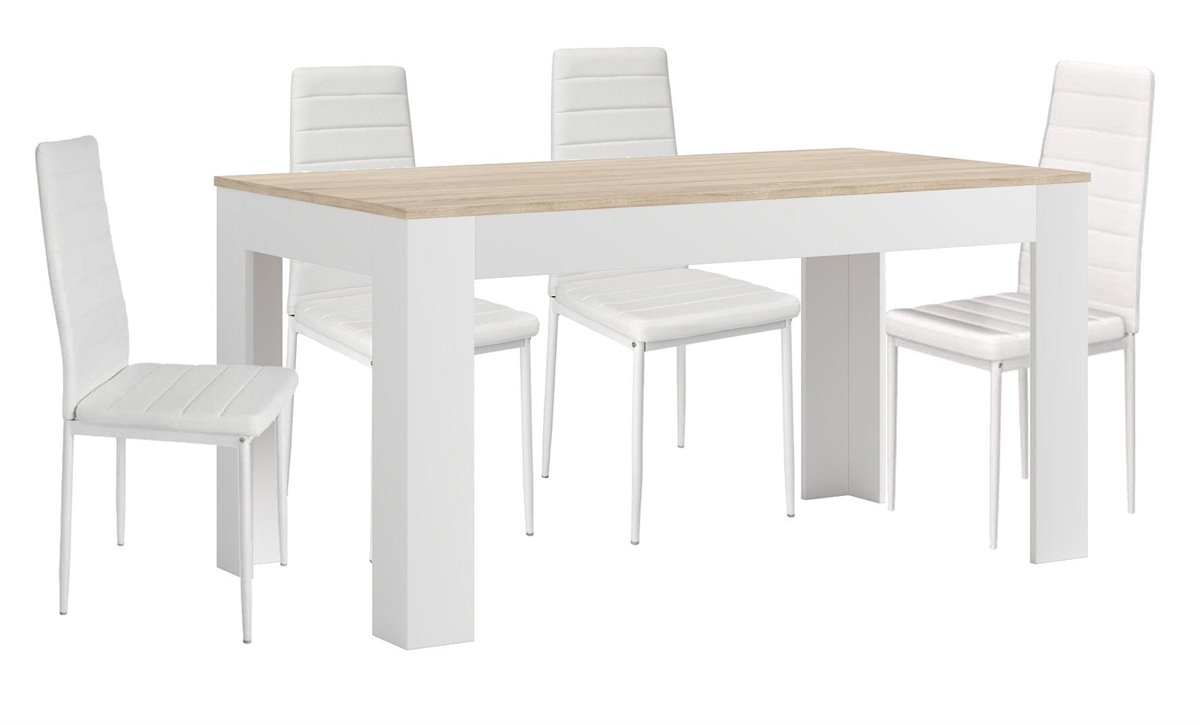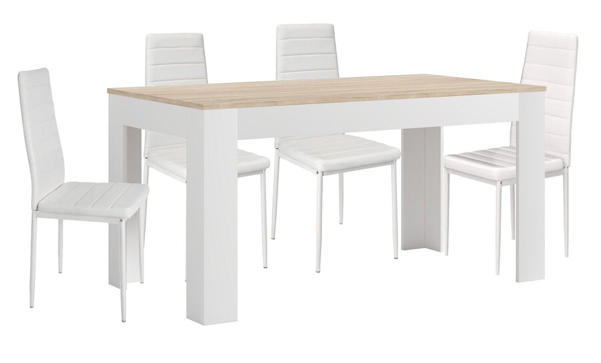 Pack Mesa de Comedor o Cocina + 4 Sillas en Polipiel/metal.