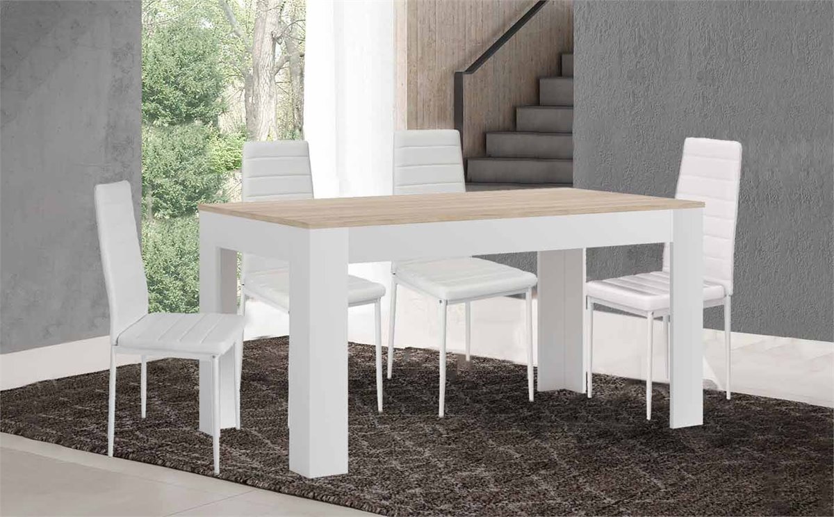 Este Pack está formado por una Mesa de Comedor o Cocina Extensible de 138 a 178 x 80 cm y 4 Sillas de Comedor en Polipiel/Metal. La Mesa de Comedor o Cocina Extensible de 138 a 178 x 80 cm tiene un diseño actual, sin complicaciones y muy funcional. Por la estabilidad y seguridad que aportan sus robustas patas, esta mesa es perfecta para casas con niños. Fabricada en melamina de alta calidad, un material sintético 100% no poroso que previene el desarrollo de bacterias y que resulta facil de limpiar con un simple trapo humedecido. Las Sillas de Comedor combinan el armazon metalico con un tapizado en polipiel de gran calidad y presencia. Con su asiento y respaldo acolchado, este producto proporcionara una gran comodidad y resistencia a la hora de sentarse en ellas.