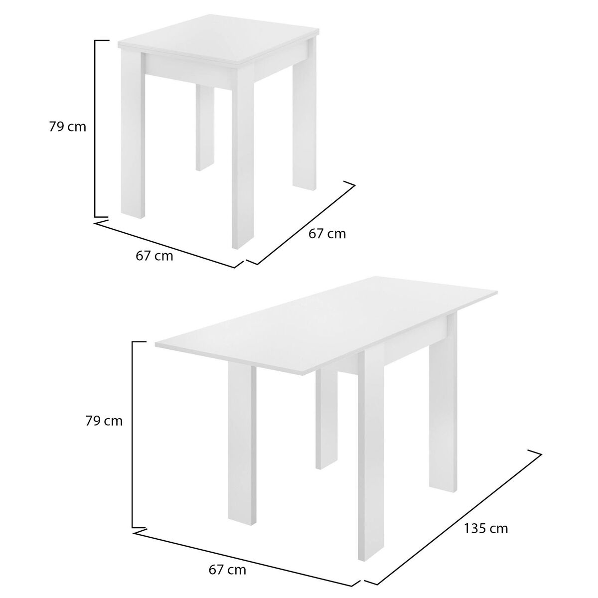 PRÁTICO E INOVADOR - Esta mesa de jantar extensível está equipada com um mecanismo de extensão que a torna indispensável para a sua casa, permitindo a sua utilização com familiares, amigos e convidados - A composição e cor deste artigo inteiramente em branco tornam o produto moderno e elegante sempre em sintonia com a moda, um must have para a decoração da sua casa.