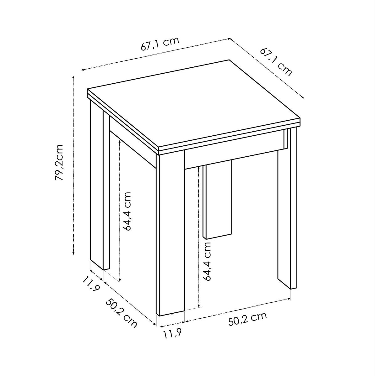 Mesa extensível Dbli, Consola extensível multiposições, Mesa consola auxiliar dobrável, 79/134x67h79 cm, Carvalho.