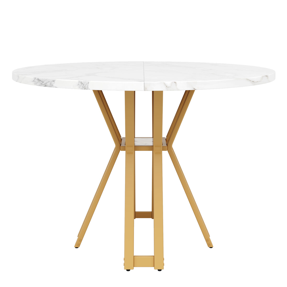 - Diseño elegante y lujoso con patas metálicas doradas y una resistente tapa de MDF con patrón marmoleado.