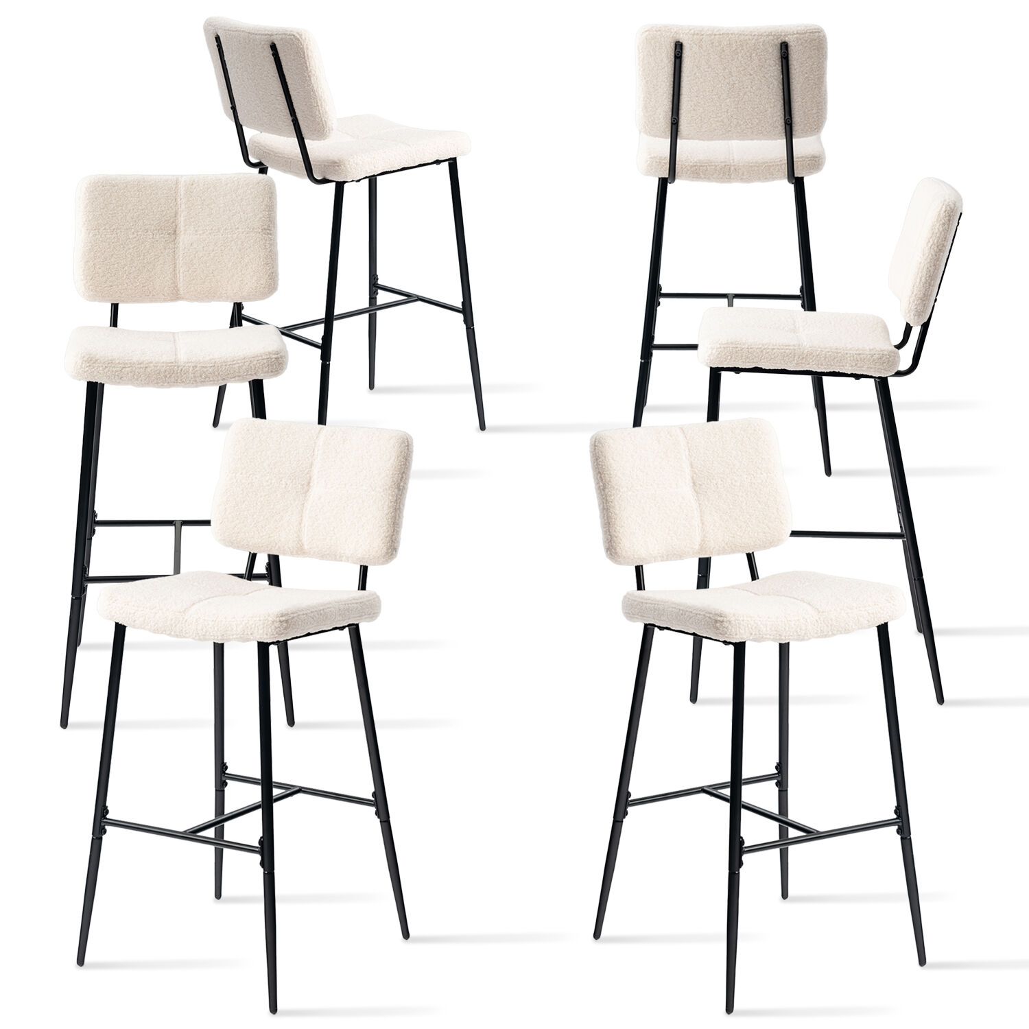 ✨ Pack De 6 Taburetes De Bar Tapizados En Bouclé Con Patas Metálicas Negras