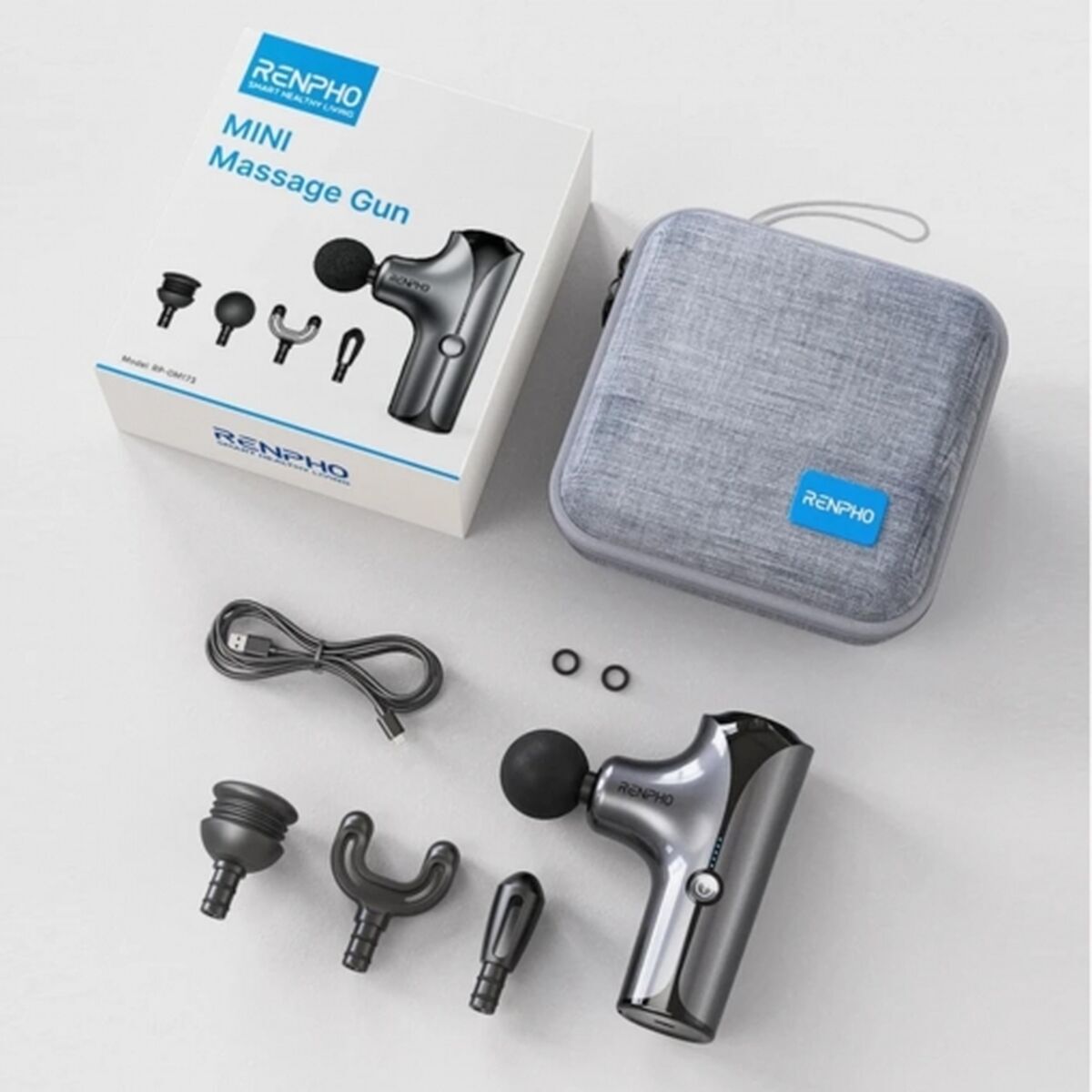 La Renpho GM173 es una mini pistola de masaje diseñada específicamente para ofrecer alivio muscular y relajación en cualquier momento y lugar, gracias a su formato compacto y portátil. Fabricada en metal resistente con un elegante acabado en color negro, su diseño de mano facilita el manejo y permite tratar de manera eficaz diferentes zonas del cuerpo, como piernas, espalda, abdomen y otras áreas musculares clave, adaptándose tanto a rutinas deportivas como a necesidades de recuperación o relajación diarias. La Renpho GM173 cuenta con varias velocidades ajustables y distintos cabezales intercambiables (según características típicas de la gama), lo que proporciona una experiencia de masaje personalizada y efectiva en función de la sensibilidad o preferencia del usuario. Su tamaño reducido no sacrifica potencia, permitiendo utilizarla cómodamente en casa, en la oficina o durante los viajes, siendo ideal para quienes buscan una solución versátil y práctica para la recuperación muscular. El modelo GM173 de Renpho destaca por su equilibrio entre eficacia, practicidad y diseño moderno, posicionándose como una alternativa accesible y fiable para el cuidado personal diario.