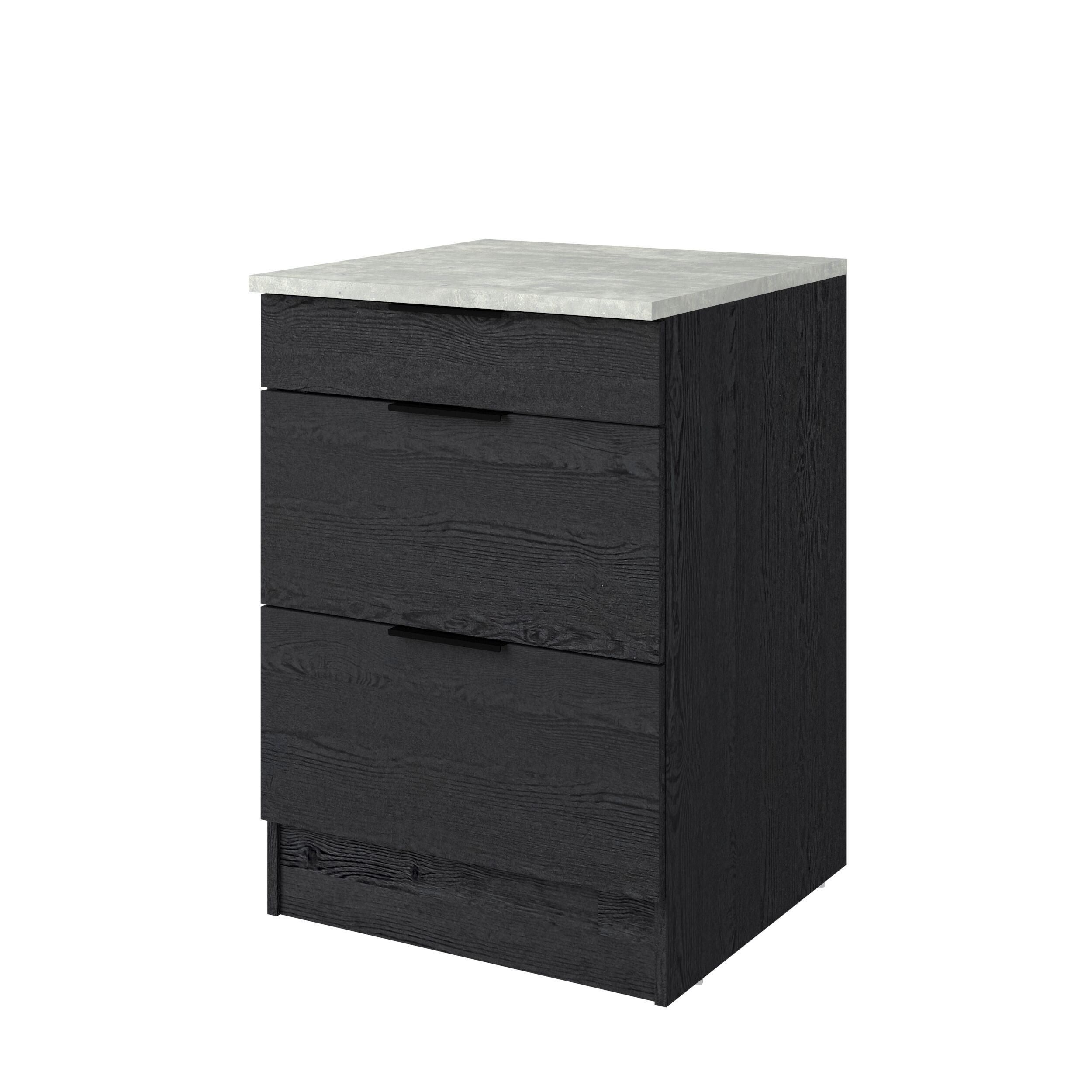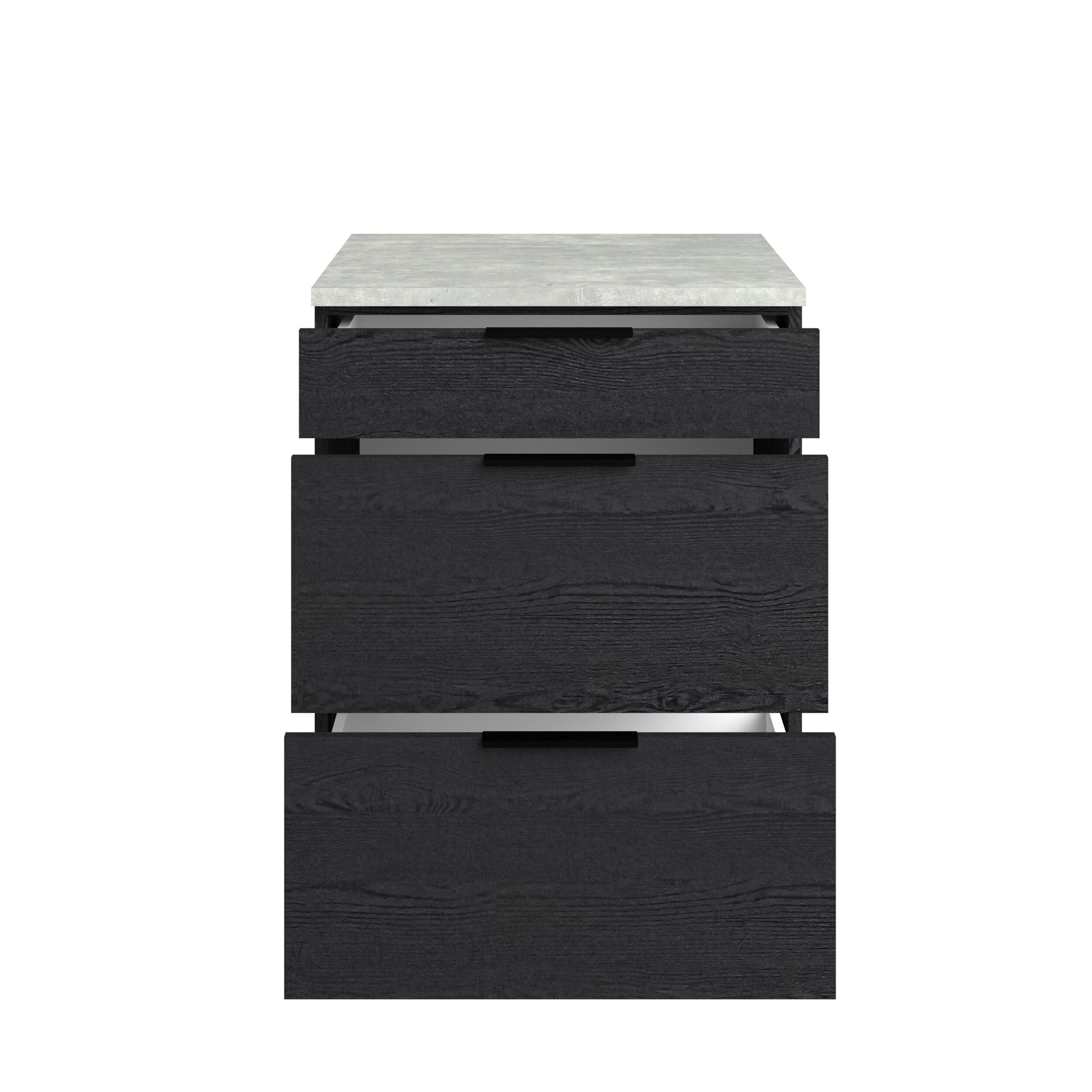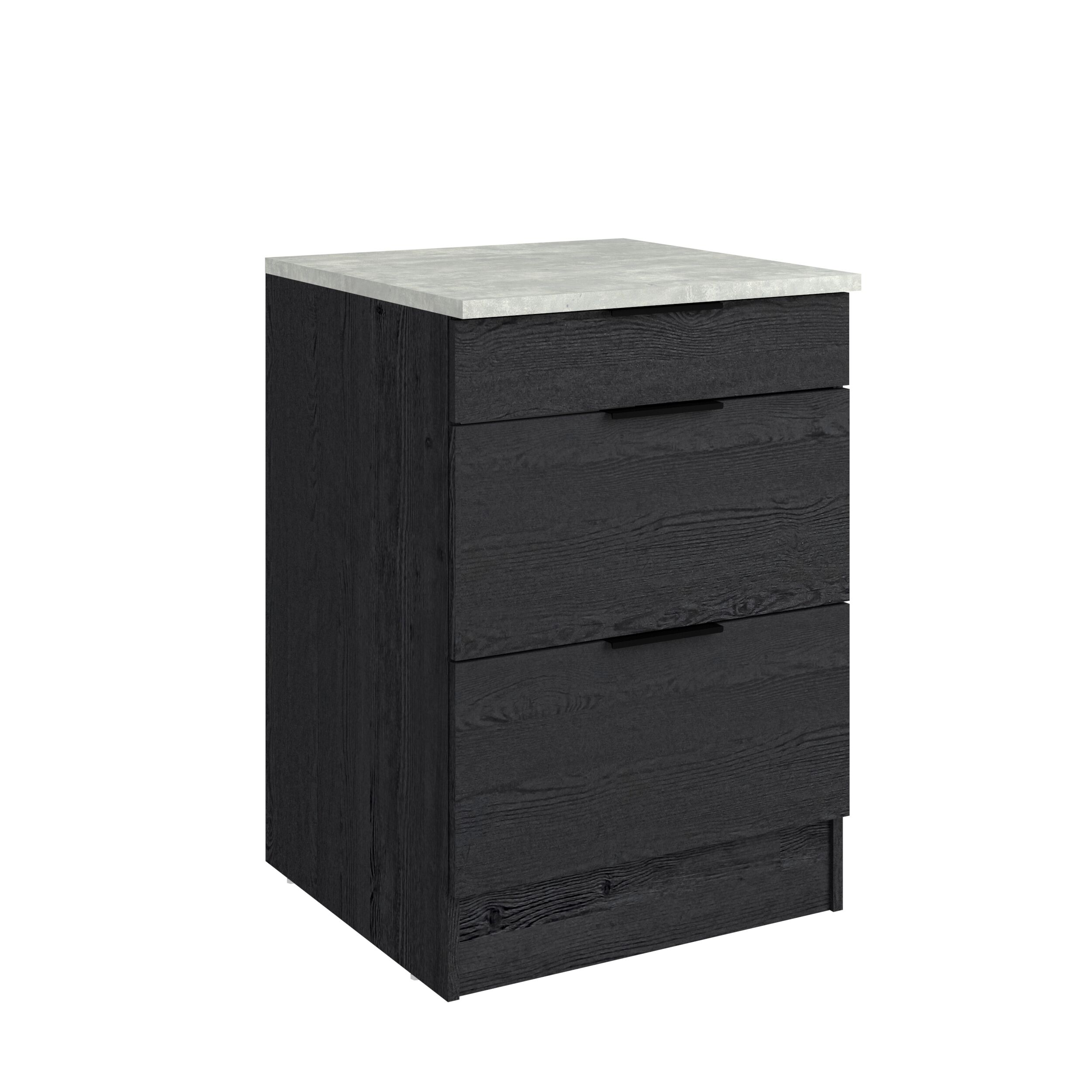 Módulo bajo ANNA de 60 cm con tres cajones. Mueble fabricado en panel de partículas, con un grosor de 15, 16 y 22 mm. Medidas: L60,1 x H86,8 x P60 cm.