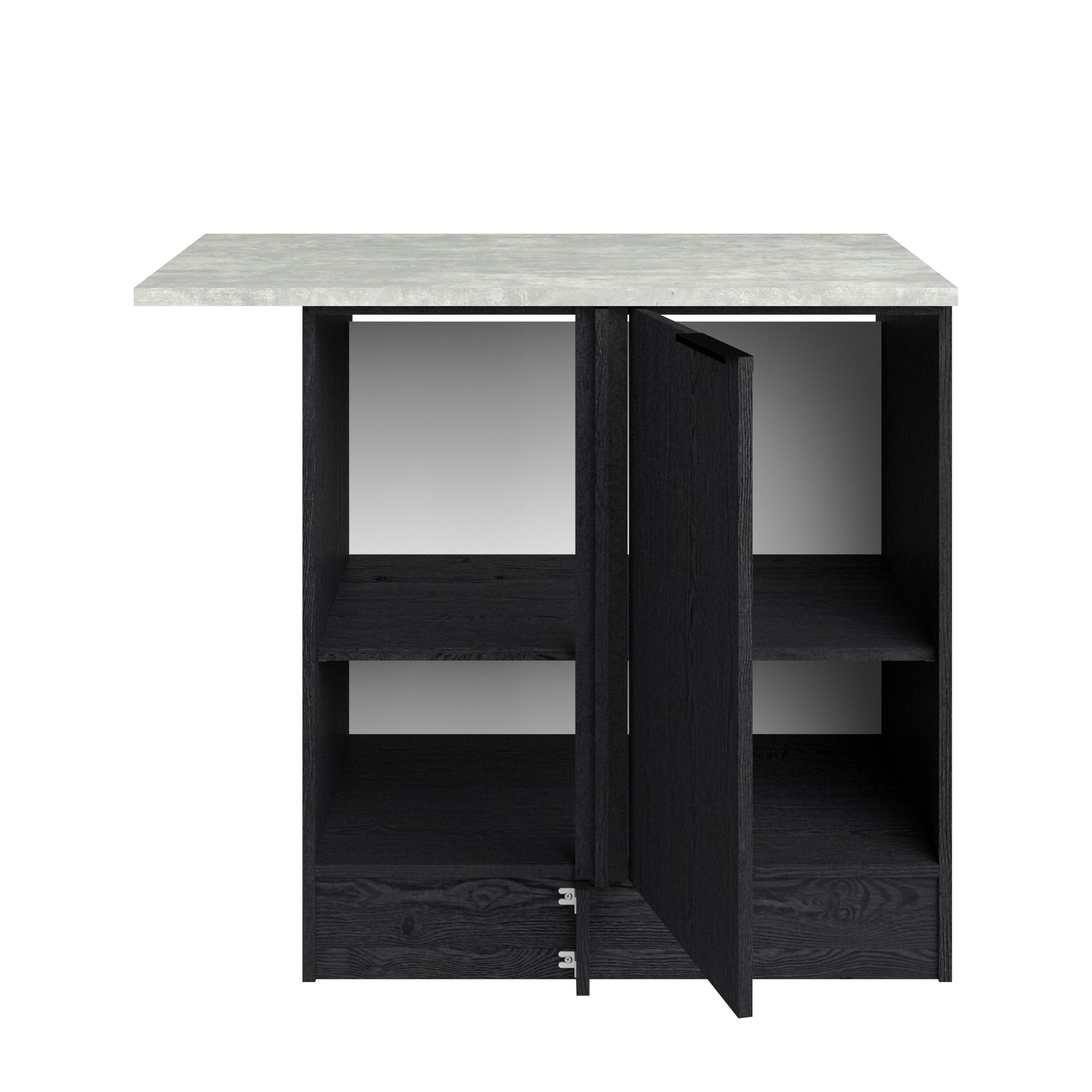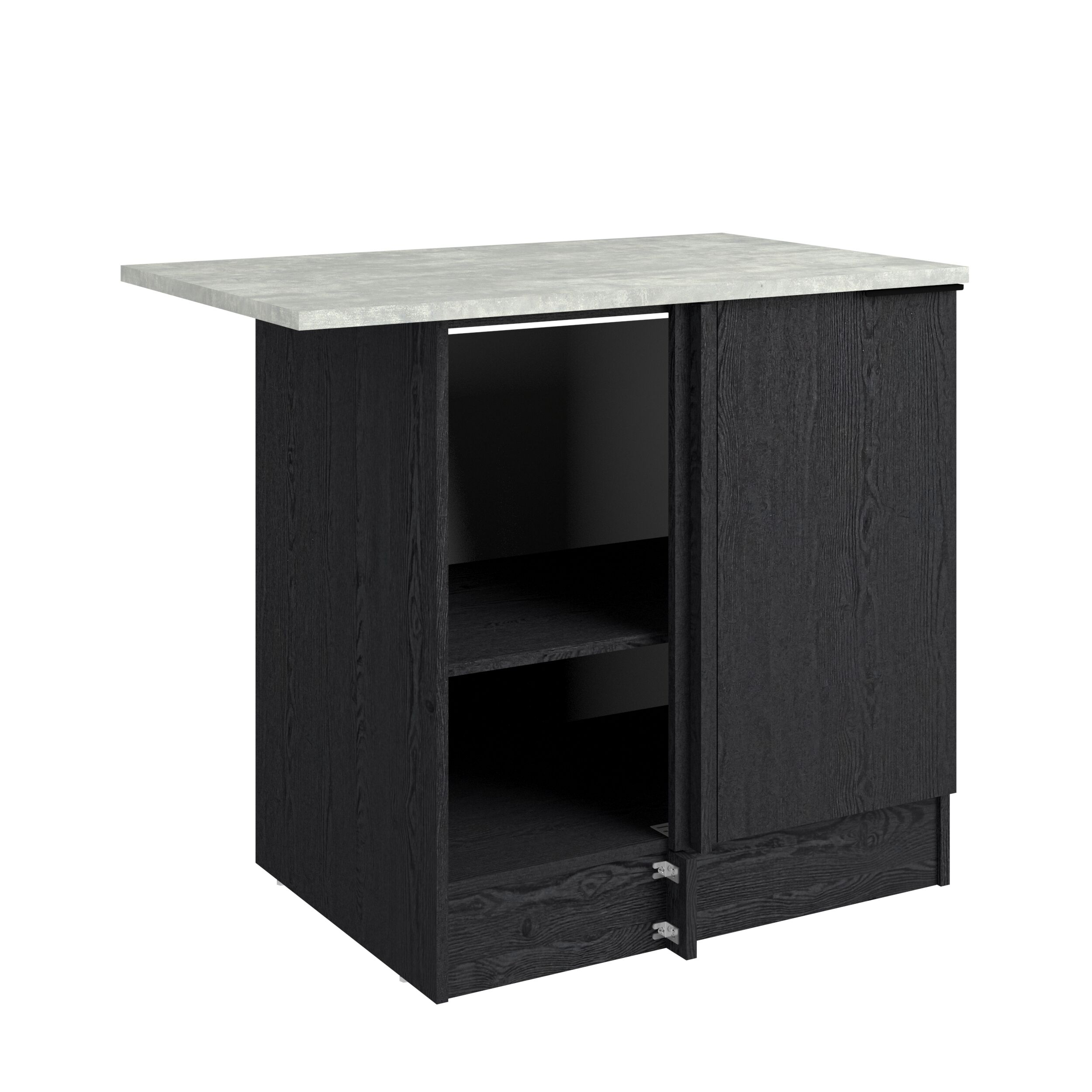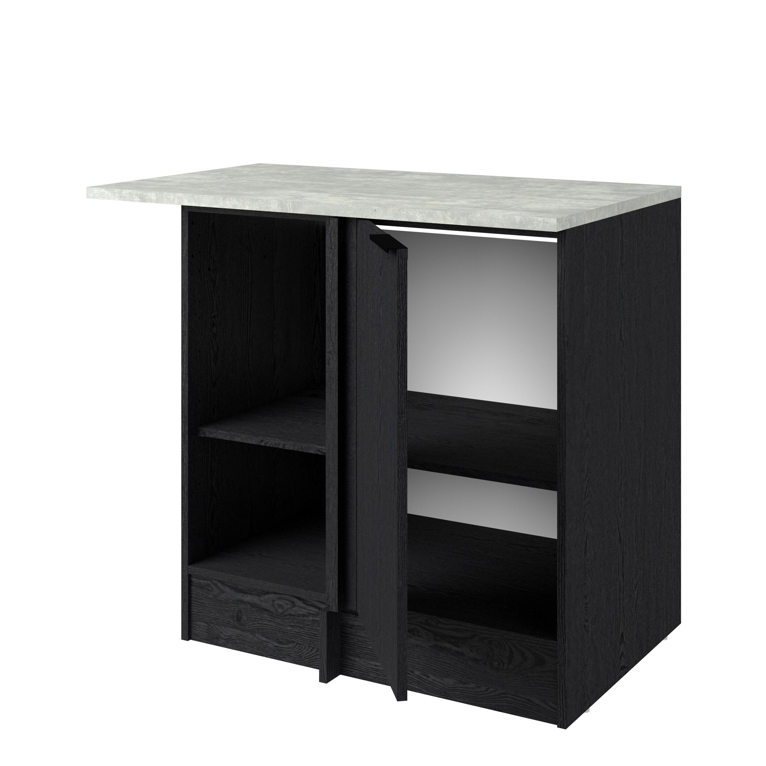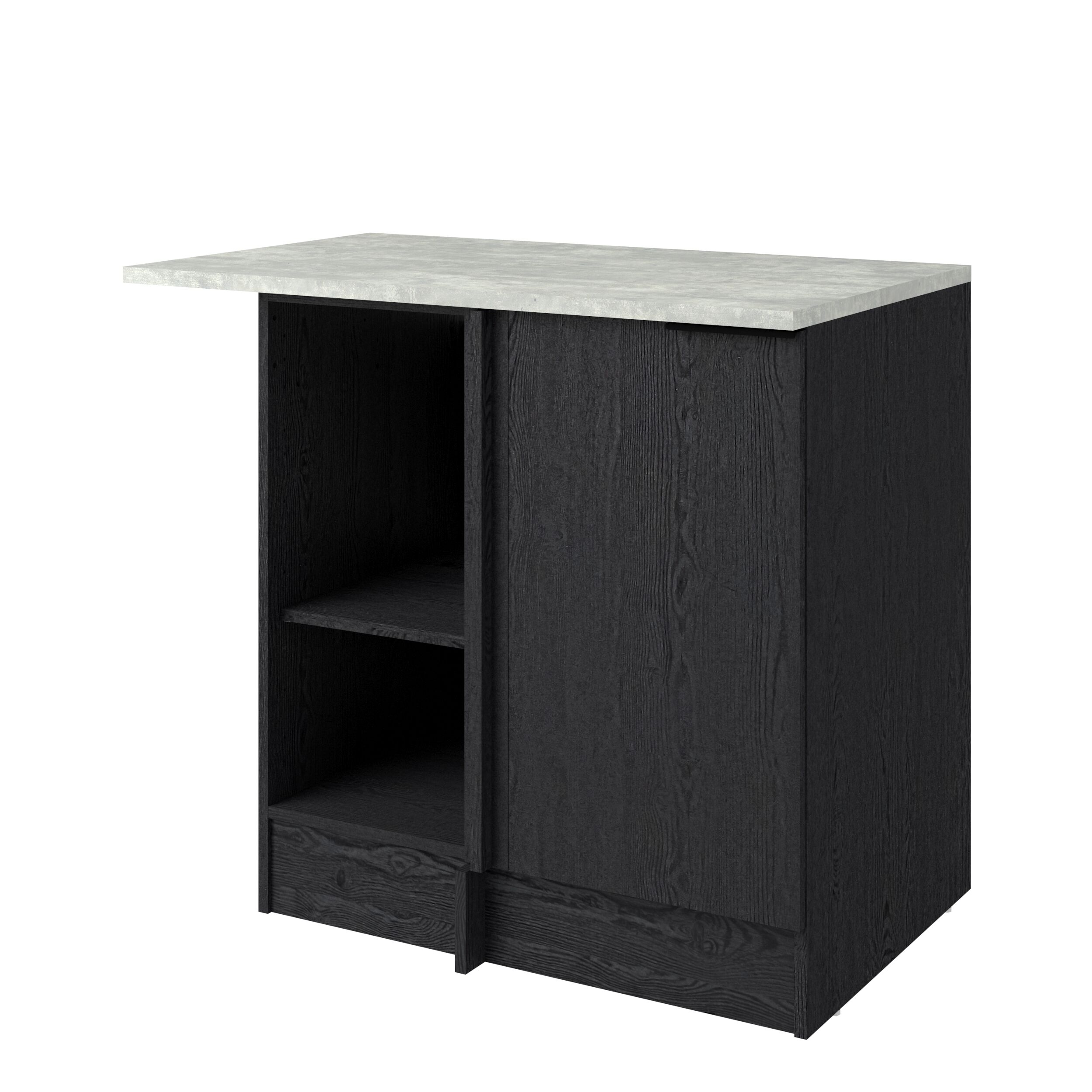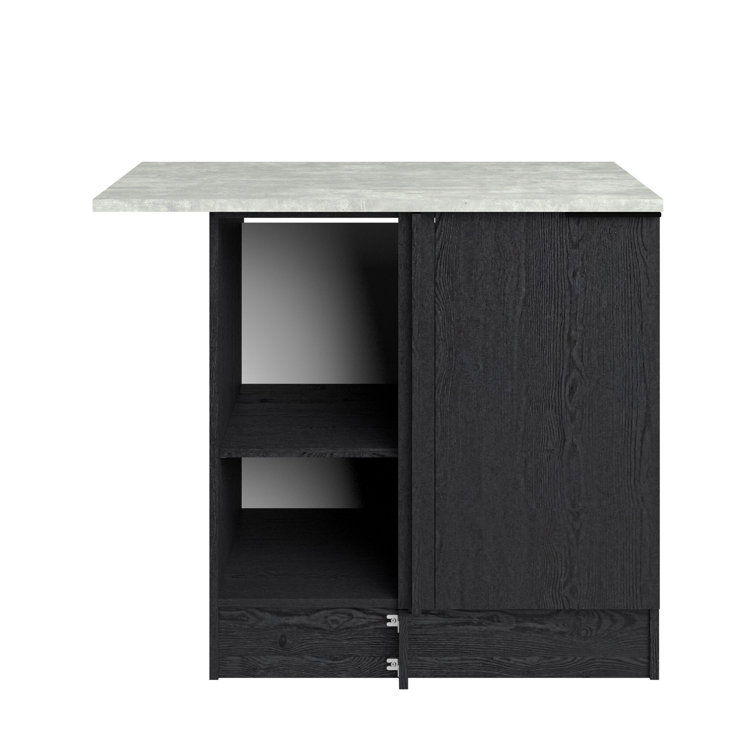 Módulo baixo de rincón ANNA de 100cm con una puerta y estante interior. Mueble fabricado en panel de partículas, con un grosor de 15, 16 y 22 mm. Medidas L100,1 x H86,8 x P60cm.