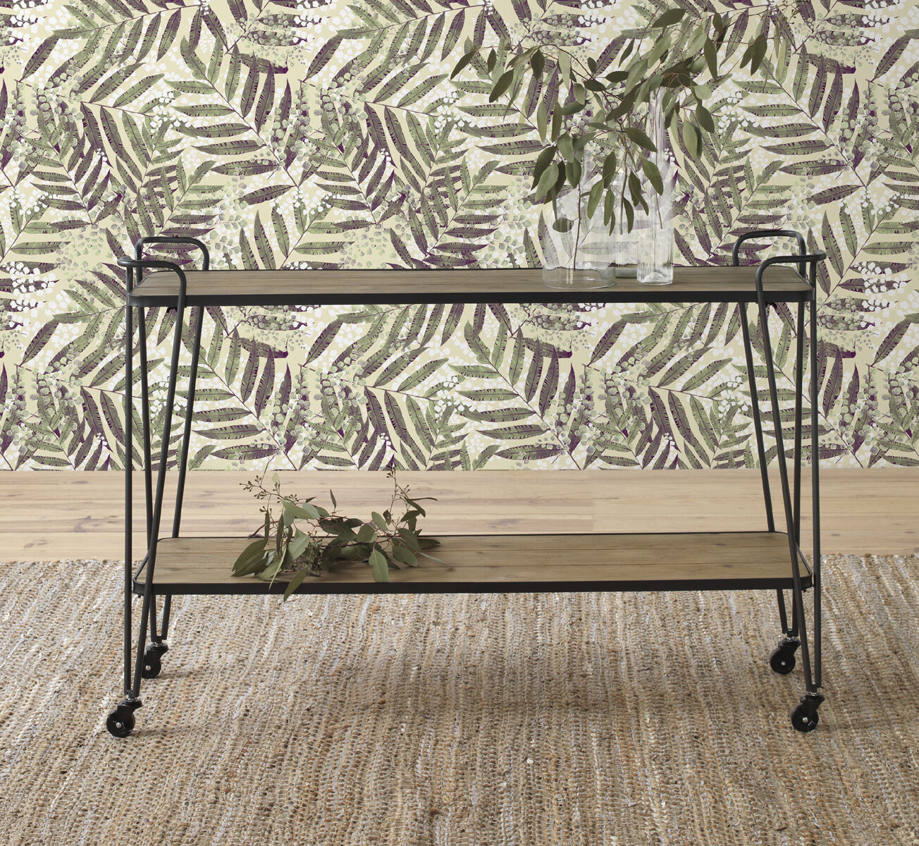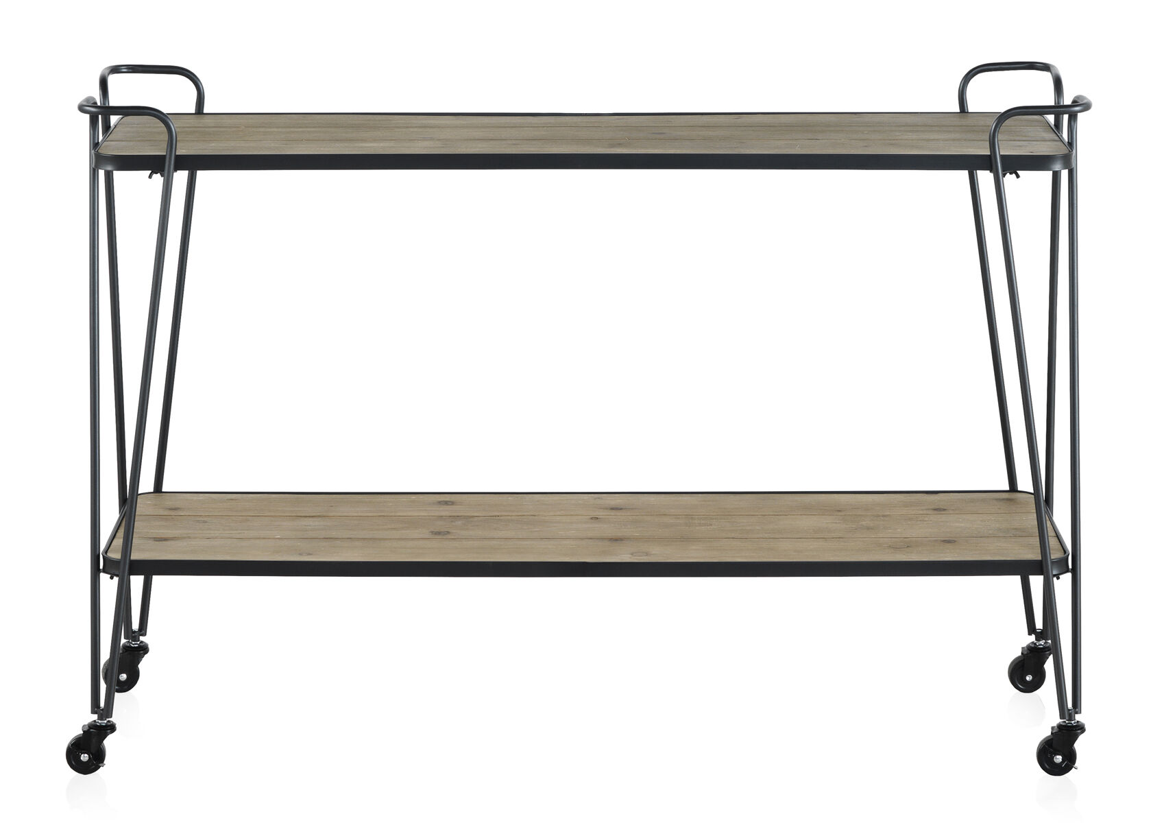 Aparador de diseño industrial con estructura y tiradores de metal negro, madera de abeto y tapa de cristal ligeramente ahumado. Ideal para un ambiente moderno de diseño industrial.