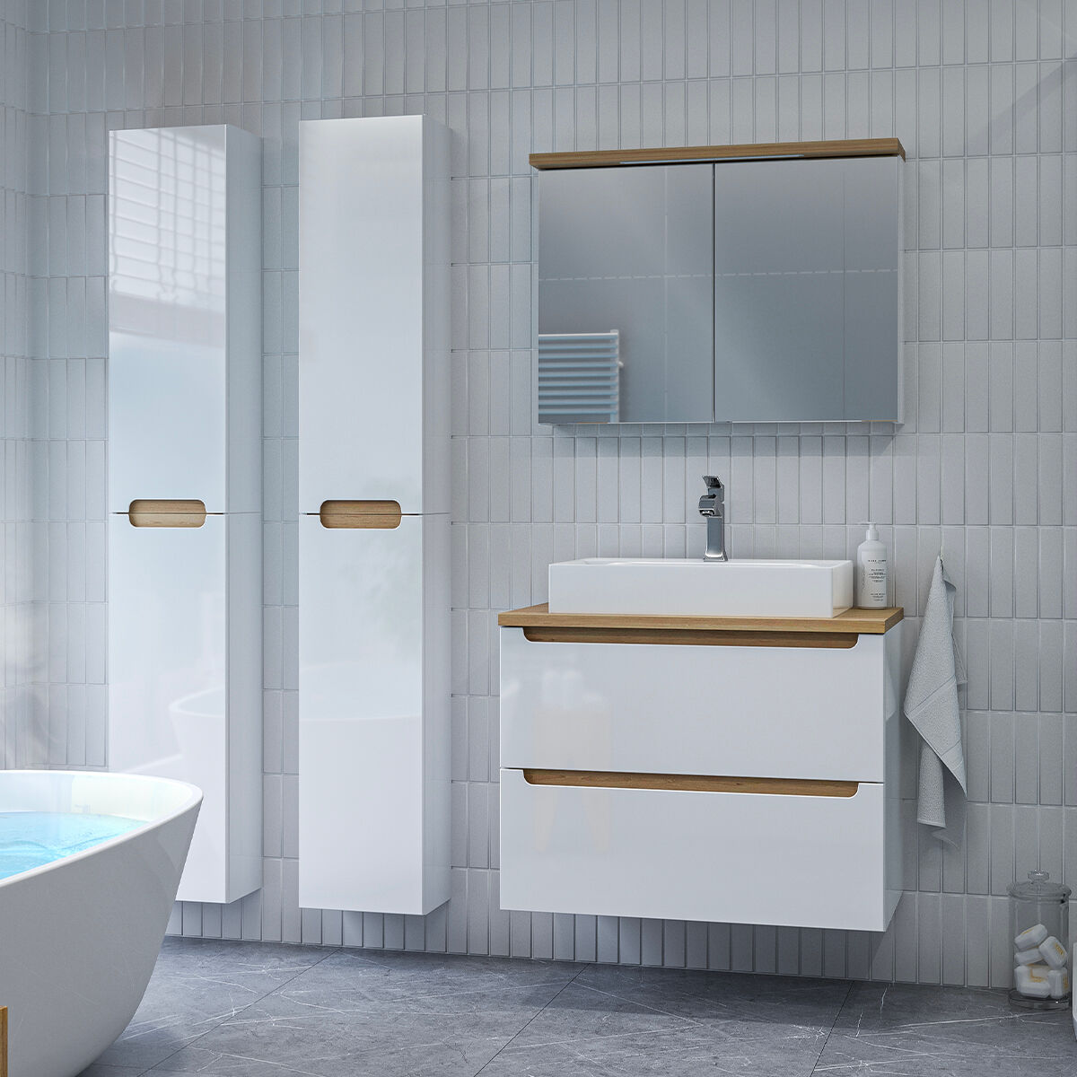 Mueble bajo lavabo 80cm 2 cajones Livia Blanco y Madera