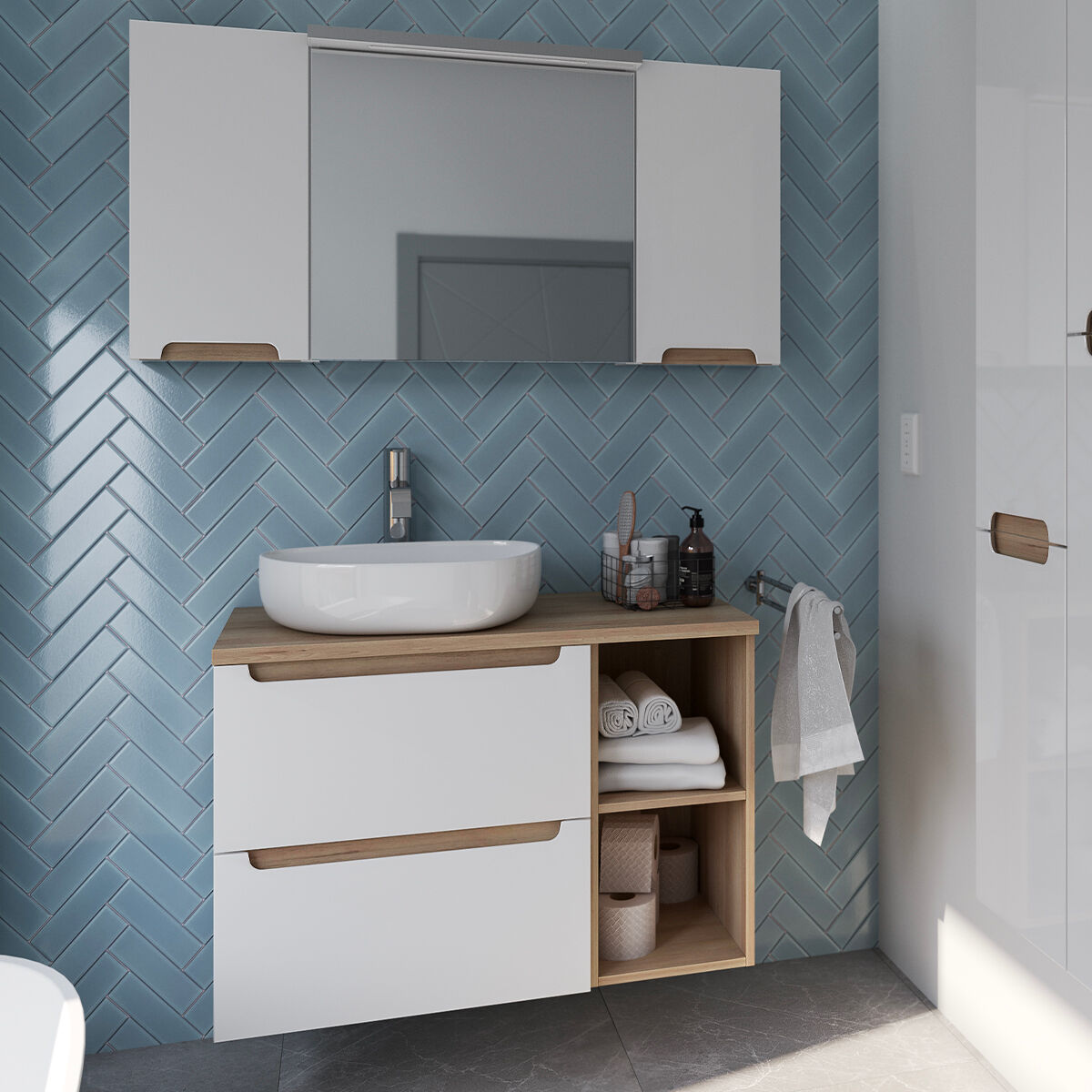 Mueble bajo lavabo 90cm 2 compartimientos Livia Blanco y Madera