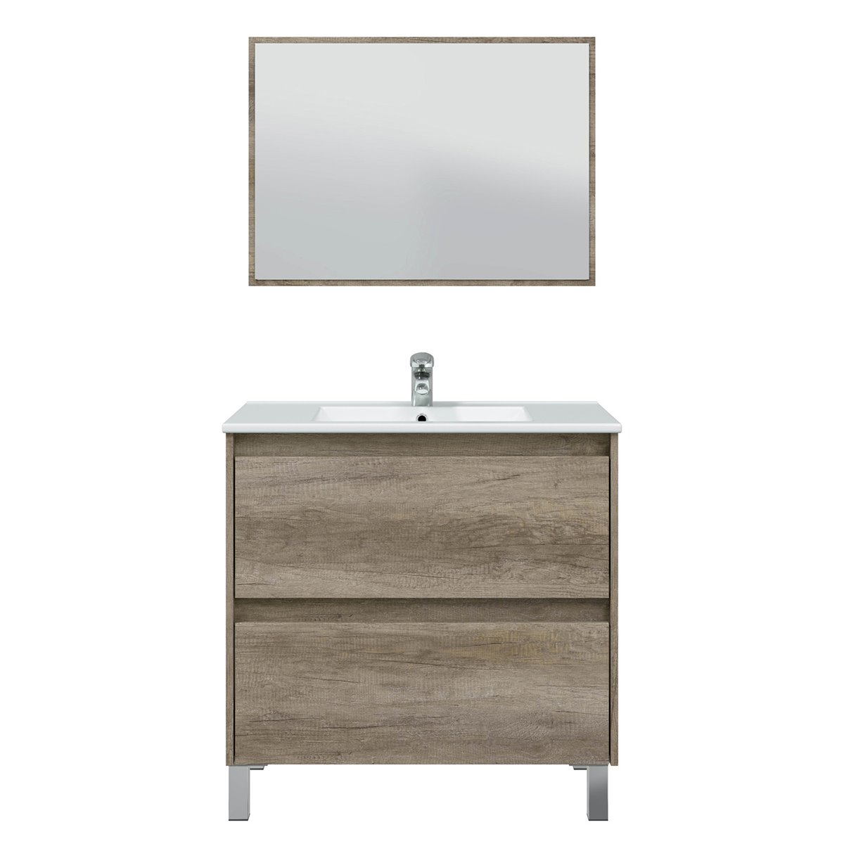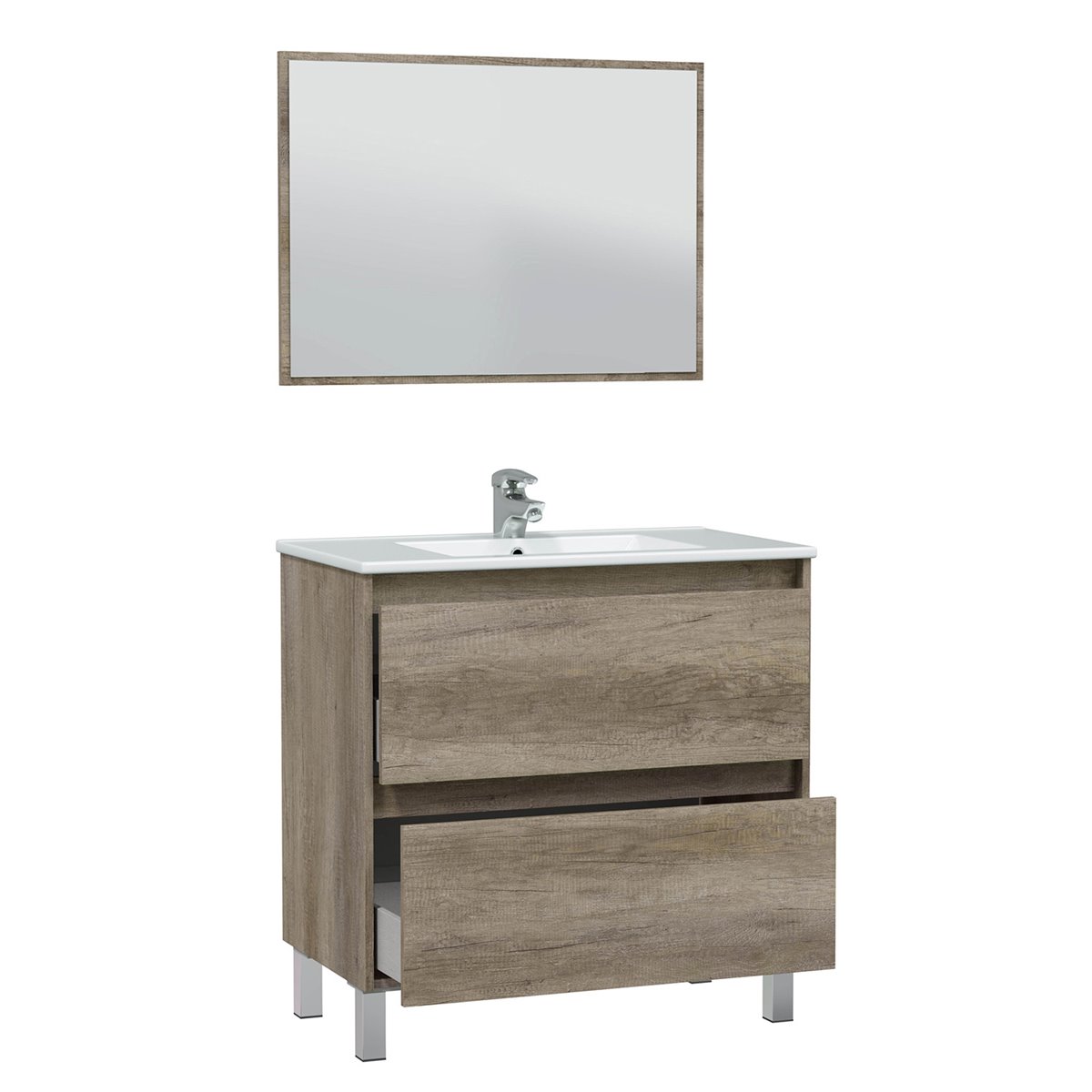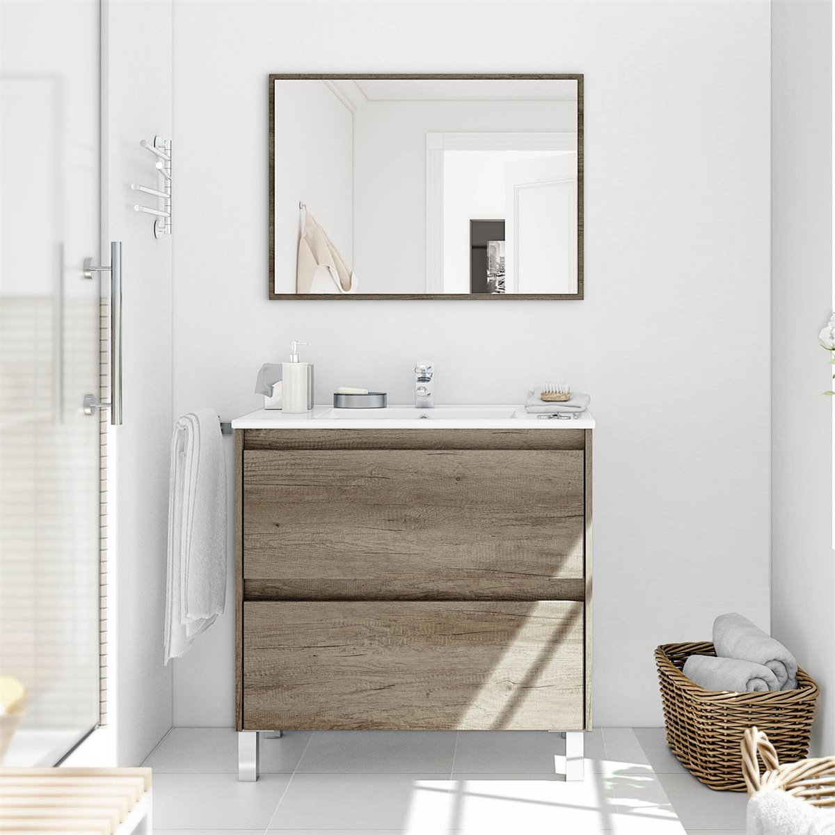 · Mueble de baño de melamina con acabado en color madera Nordik, un diseño ideal para un estilo de decoración moderno y un toque ligeramente rústico.