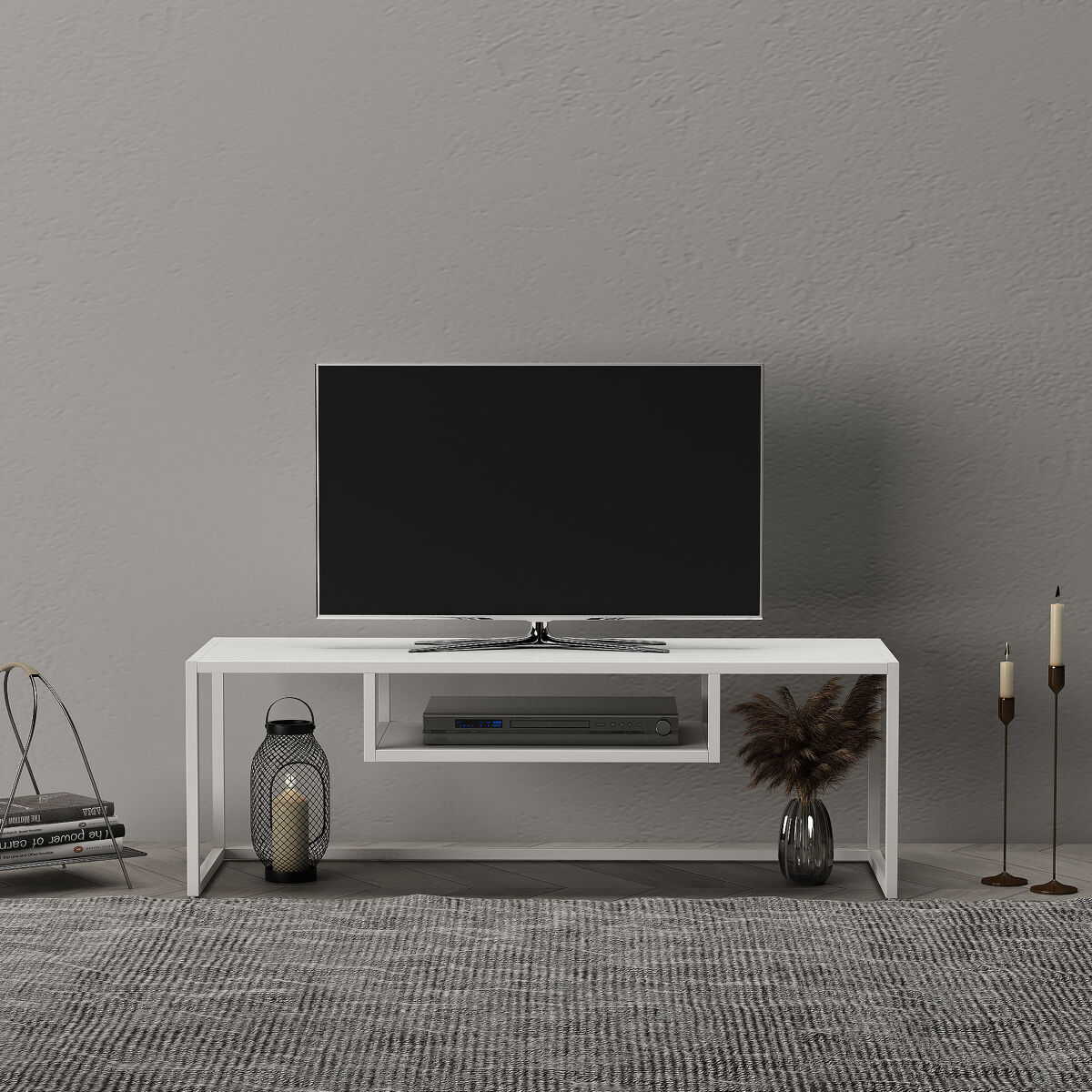 Nuestra mesa de TV 'Isokyrö' ayuda a mantener el orden alrededor de la televisión, proporcionando un lugar centralizado para colocar la televisión y el estante central ofrece un espacio de almacenamiento adicional para otros equipos electrónicos, como reproductores de DVD, consolas de videojuegos, o altavoces.