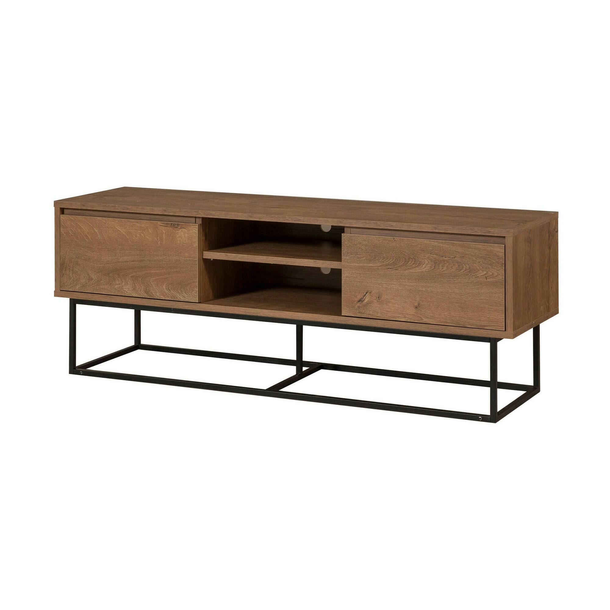 SUPORTE DE TV - Aparador de sala, Móvel baixo para TV, Base de parede equipada, 140x40h50 cm, Nogueira e Preto