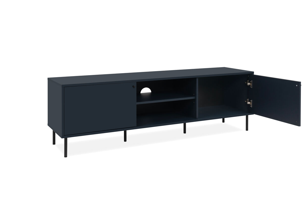 Transforma tu sala de estar con estilo! El mueble de TV CARACAS es la pieza perfecta para darle a tu espacio un toque moderno y sofisticado. Con sus 160 cm de longitud, este mueble cuenta con 2 puertas, 2 tableros divisórios y 1 estante, brindándote amplio espacio para organizar tus dispositivos electrónicos y objetos decorativos. Fabricado con tablero de partículas de alta calidad en un hermoso color azul marino, no solo es funcional, sino que también añade elegancia a cualquier hogar. Y puedes combinarlo con el resto de la serie Caracas para completar la decoración perfecta de tu salón