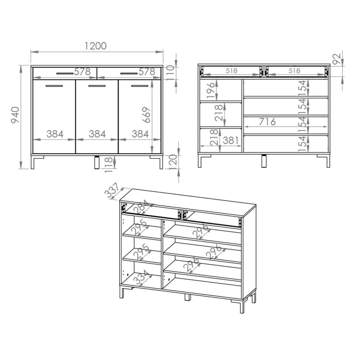 Mueble para zapatos 3 puertas 2 cajones Liora Madera