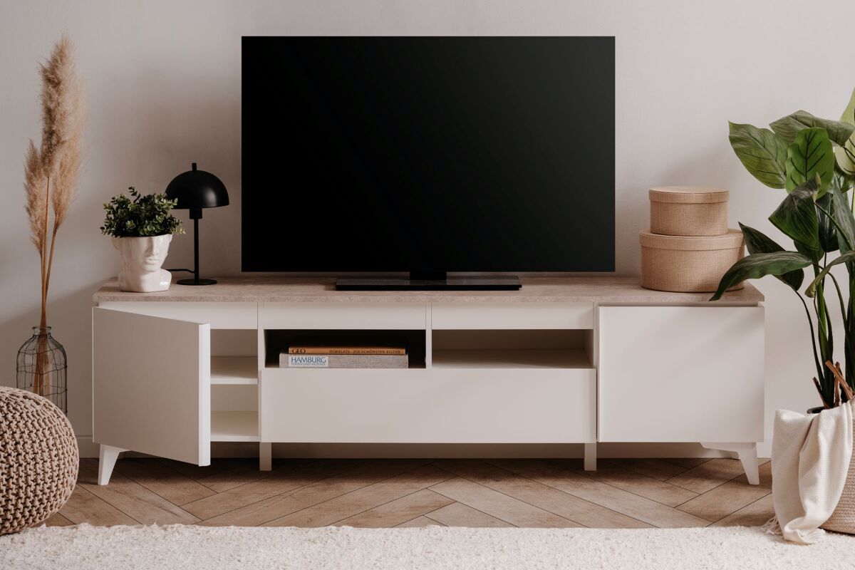 Mueble Tv Bertrix 2 Puertas 1 Cajon 177X51,5X40 Blanco