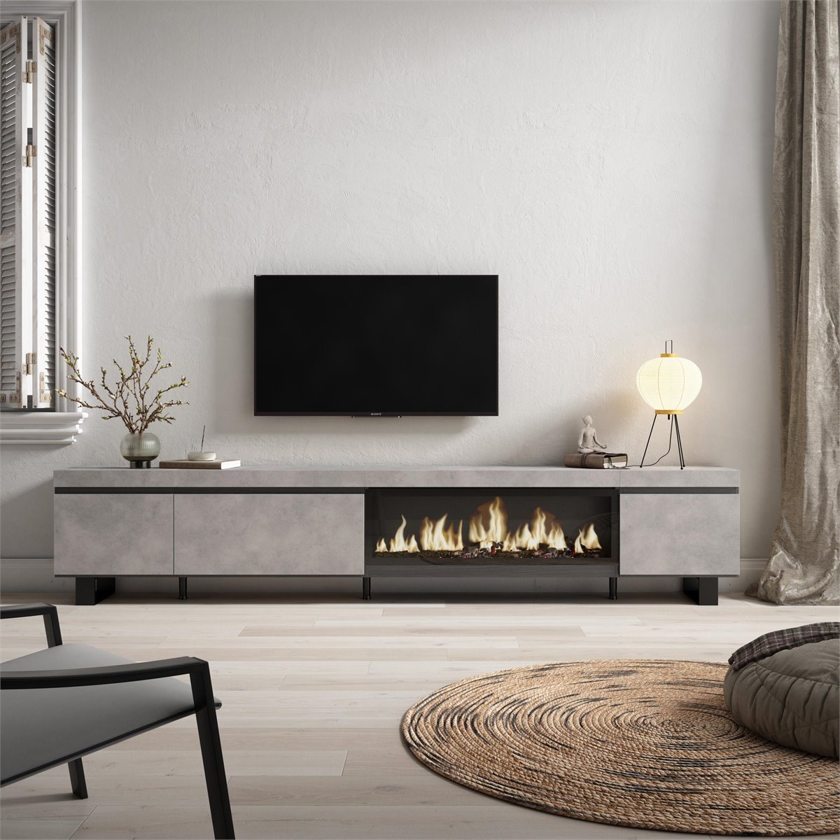 Modulo Chimenea Led. Medidas del Módulo: 107cm. de Ancho, 45cm. de Altura, 35cm. de Profundidad, color cemento.