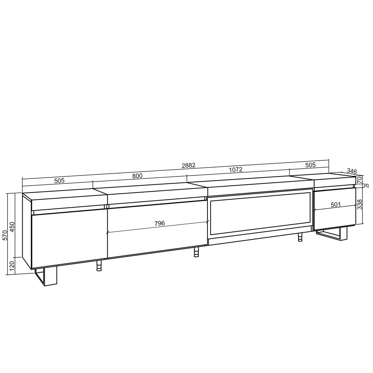 Módulo Tv con puerta, gran capacidad de almacenaje. Medidas del Módulo: 80cm. de Ancho, 45cm. de Alto, 35cm. de Profundidad. Color roble y negro con veteado de madera de tacto poroso de alta calidad.