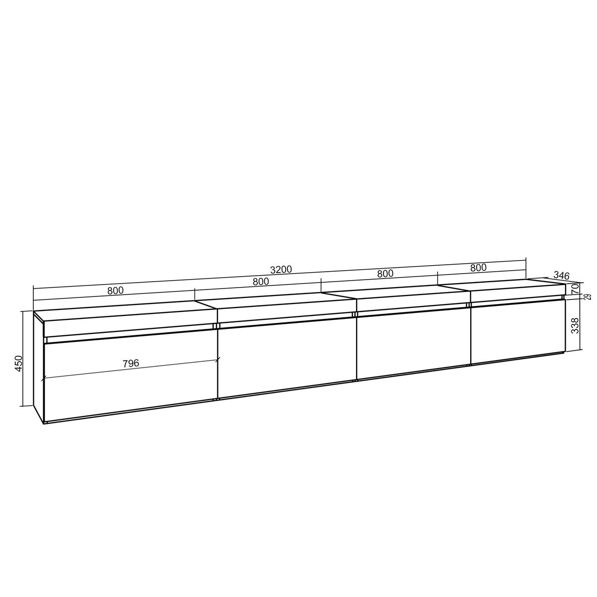 Módulo Tv con puerta, gran capacidad de almacenaje. Medidas del Módulo: 80cm. de Ancho, 45cm. de Alto, 35cm. de Profundidad. Color negro con veteado de madera de tacto poroso de alta calidad.